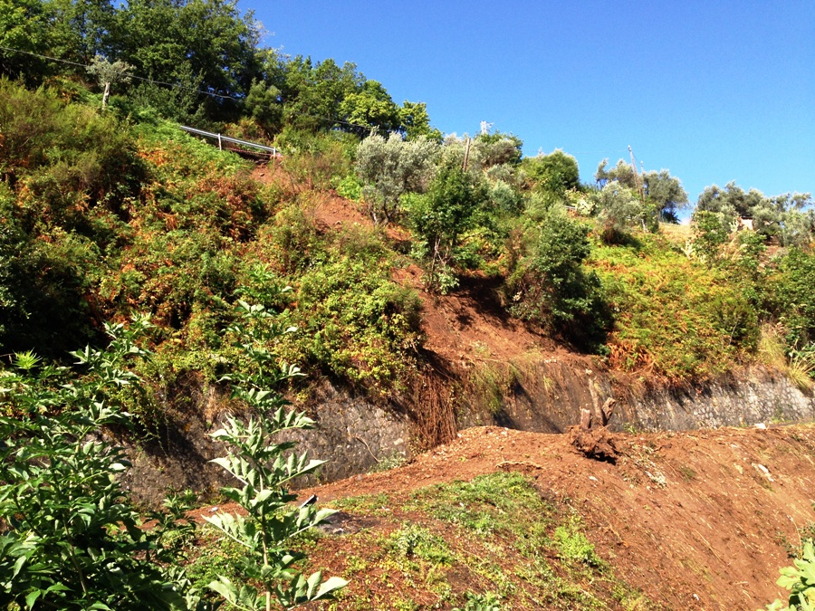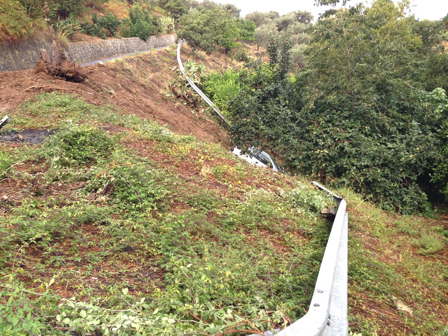 - Il guard rail divelto nella zona della frana in cda Salarona
