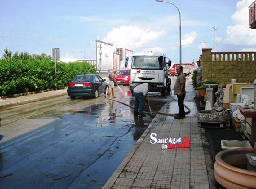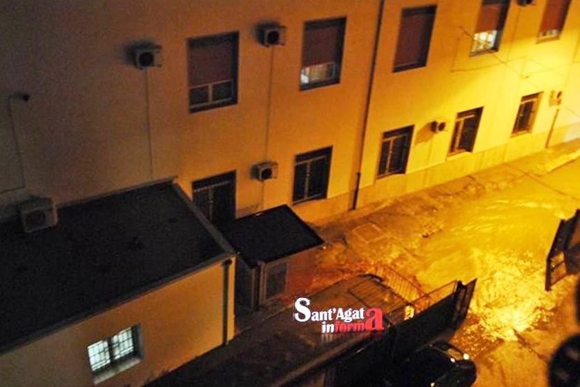Stavolta l’ondata di maltempo è durata molto di meno rispetto a quella dello scorso 9 Agosto, danni e disagi a Sant’Agata Militello sono stati in misura di gran lunga minore, ma comunque qualche piccolo problema c’è stato. Il nuovo violento acquazzone abbattutosi su Sant’Agata nella tarda serata di Martedì ha infatti causato qualche allagamento, ancora una volta nella parte più bassa del paese. In particolare i Vigili del Fuoco del locale distaccamento sono stati impegnati in tre interventi dovuti ad allagamenti, due in via Cosenz, uno in Via Mortilli. Un altro intervento i Vigili del Fuoco lo hanno invece effettuato in zona San Leo, sempre per allagamento. Sul lungomare, invece, un’autovettura Fiat Cinquecento è finita con una ruota all’interno di un tombino divelto. A bordo si trovava una coppia di coniugi e la donna, leggermente ferita, ha dovuto fare ricorso alle cure del pronto soccorso. Ingenti danni sono stati accusati, invece, dal titolare di una sanitaria di via Medici il cui deposito, situato nei pressi del residence Maris di vicolo Cagni, è stato invaso dall’acqua con a perdita di parecchie pedane di materiale. Danni e materiale investito dall’acqua e dai liquami fuoriusciti dai tombini anche al deposito edile della ditta Monastra di via Ragusa.