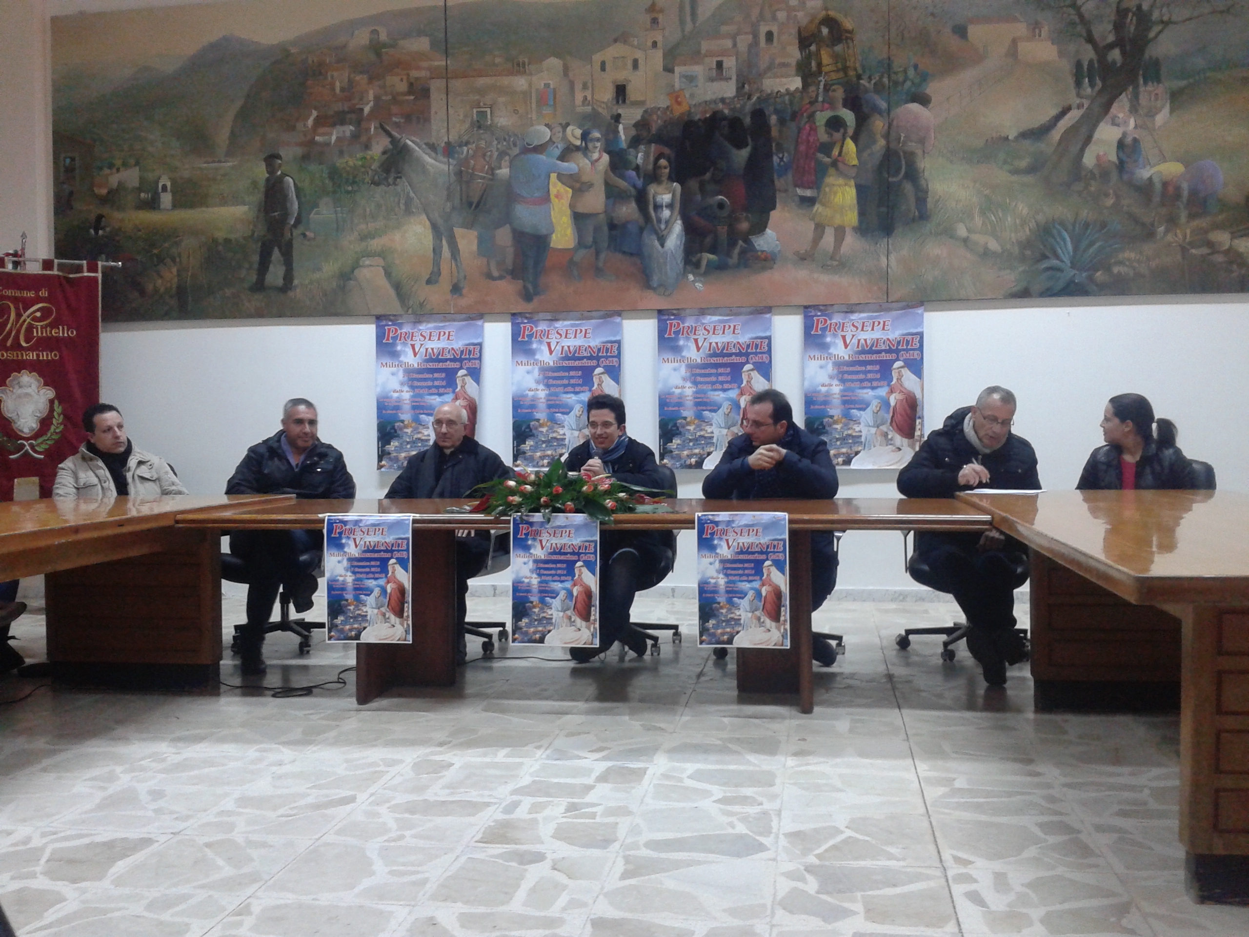 conf presepe Il sindaco, Avv. Calogero Lo Re, ha sottolineato l’importanza di questa manifestazione, che si sta riproponendo a distanza di alcuni anni dall’ultima volta, e la voglia di istituzionalizzare questo appuntamento affinché si possa ripetere anche negli anni successivi con la messa in bilancio di una voce ad esso dedicata che possa farlo diventare un impegno da rispettare anche da parte delle amministrazioni successive. Il presidente Anspi, don Calogero Oriti, ha voluto rivolgere l’attenzione al significato del presepe vivente, quello di “essere famiglia”, e alla ricchezza di una comunità come Militello Rosmarino, che ha tradizioni e capacità da condividere e far emergere. Dopo di lui Ignazio Restifo Pilato, coordinatore della manifestazione, prima di parlare dell’organizzazione, ha voluto raccontare come sia nata la voglia di rifare questa esperienza, come sia partita da parte di ragazzi che da bambini l’avevano fatta nell’ultima rappresentazione di 12 anni fa, con un impegno e una responsabilità notevoli. E poi, quel che rispecchia in pieno la voglia di “essere famiglia” credo sia pienamente riscontrabile nel voler dedicare il presepe di quest’anno alla piccola Sylvia Savoca, scomparsa qualche anno fa ma rimasta nel cuore di tutti, tra l’altro piccola protagonista, nel ruolo di Gesù Bambino, insieme ai genitori, proprio nel presepe di 12 anni fa. A questo punto Ignazio Restifo Pilato ha illustrato la parte logistica, la location scelta è ovviamente quella del centro storico, con un percorso delimitato da un inizio e una fine, all’interno del quale si troveranno tutte le attività tipiche del presepe. Le attività verranno ricreate in magazzini di origine del ‘500, anche se i costumi e le attività tipiche nebroidee riprodurranno un ambiente di fine ‘800/inizio ‘900. Le stradine del borgo post medievale si prestano perfettamente ad una rappresentazione storica che riporterà i visitatori indietro nel tempo di almeno un secolo. La natività si troverà a metà del percorso, all’interno dell’arco del castello che sovrasta il paese e attorno al quale sorge il centro storico normanno. Una trentina i siti che ospiteranno le tipiche attività artigianali e la presenza di due punti di degustazione per allietare i visitatori. Al di fuori del percorso si potranno trovare degli stand in cui saranno esposti i prodotti tipici locali. In conclusione ci sono stati i ringraziamenti a  singoli e associazioni che si stanno impegnando gratuitamente per la riuscita del progetto. In chiusura l’Arciprete Don Calogero Oriti ha voluto lasciare gli ospiti con un messaggio che racchiudesse il senso della natività, il messaggio di pace che si può riaccendere nel nostro cuore proprio in occasione del Natale, perché portato sulla Terra dalla nascita del Bambin Gesù. La conferenza, moderata da Gaetano Cicirello, ha visto la partecipazione di numerose persone, pronte ad accogliere con spirito di collaborazione quest’esperienza e tutti i visitatori che con loro vorranno condividerla.