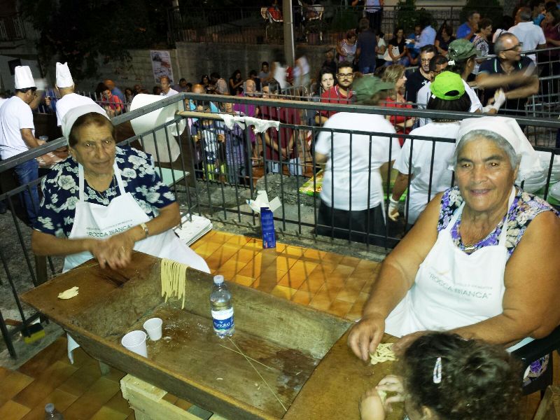 Divenuta un importante centro di aggregazione non soltanto per gli abitanti del luogo, si distingue da subito per l’organizzazione della caratteristica sagra, che riscuote notevole successo, sin dal suo esordio. L’iniziativa cresce anno dopo anno, sino a divenire un appuntamento tanto atteso e di ampio richiamo per tutti i santagatesi ed i turisti in vacanza. Hanno lavorato alacremente per la realizzazione dell’evento Giancarlo Mistretta, Melina Valore, Carlo Mistretta, Benedetto Mistretta, Vincenzo Mistretta, Sonia Mistretta, Angela Nocifora, Gaetano Caliò, Giuseppe Fazio, Michele Fazio, Salvatore Saccone, Michele Fazio, Giovanni Collura, Benedetto Nocifora, Massimo Nocifora, Salvatore Drago, Benedetto Salerno e Biagio Pilato. Sono stati cotti, per la delizia del palato degli intervenuti, ben 130 kg di maccheroni, serviti con ricotta salata e conditi con 120 litri di ragu’. Per celebrare ed esaltare, ancor più, le antiche metodologie della cucina siciliana sono intervenute: le Sig.re Maria Amata ed Angela Fazio ( Insieme nella foto), che hanno preparato manualmente i maccheroni nella tradizionale madia di legno con l’ausilio dei “cannizzoli”; ricordando gli insegnamenti tramandati loro dalle nonne. L’Associazione Rocca Bianca, annovera circa 50 iscritti ed è presieduta da Michele Fazio . Il direttivo è inoltre composto da: Vincenzo Mistretta( Vice- Presidente), Gaetano Caliò (Tesoriere) e da 3 consiglieri: Giancarlo Mistretta, Michele Fazio e Giovanni Collura. Animazione e musiche a cura di Charly Mistretta.