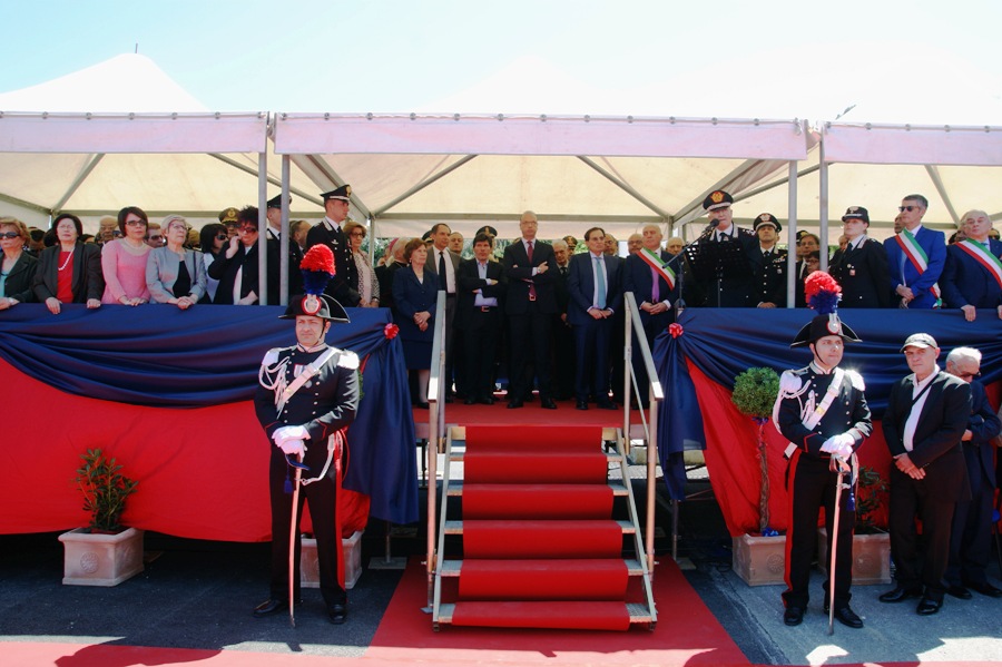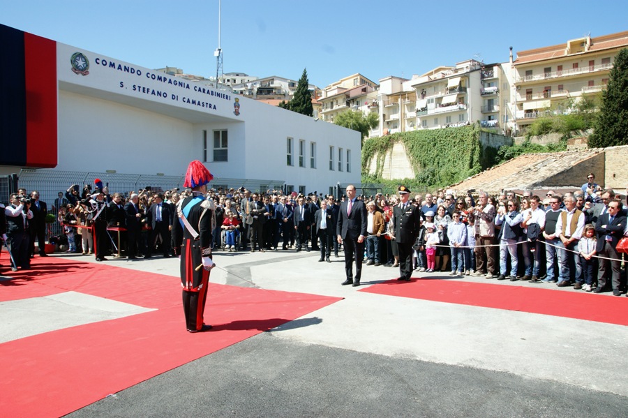 Inaugurata la nuova Caserma che ospiterà la Compagnia dei Carabinieri di Santo Stefano Camastra. La Caserma è stata intitolata al Carabiniere Biagio Frugarello, caduto il 5 settembre 1947 a Palermo ed insignito di Medaglia di Bronzo al Valor Militare “alla memoria” per aver perso la vita, il 3 settembre 1947 a Rocca Monreale (PA), durante un conflitto a fuoco avvenuto con un pericoloso latitante. Innanzi ad una festante cornice di pubblico, tra cui le scolaresche del luogo, i Reparti schierati in armi e la Fanfara del 12° Btg “Sicilia hanno reso gli onori al Ministro dell’Interno, On. Angelino Alfano, che, accompagnato dal Comandante Generale dell’Arma dei Carabinieri, Gen. C.A. Tullio Del Sette, ha voluto essere presente alla cerimonia. Presente anche il Generale Riccardo Galetta, Comandante Legione Carabinieri Sicilia. A guidare il picchetto d’onore, il Tenente Fabrizio Macrì, comandante della Compagnia Carabinieri di Sant’Agata Militello. Particolarmente significativo il saluto del Comandante Provinciale dei Carabinieri di Messina, Col. Iacopo Mannucci Benincasa, che nel richiamare lo stretto legame tra l’Arma e la popolazione di S. Stefano di Camastra ha sottolineato l’importanza strategica di quel presidio a difesa del territorio dalla criminalità.