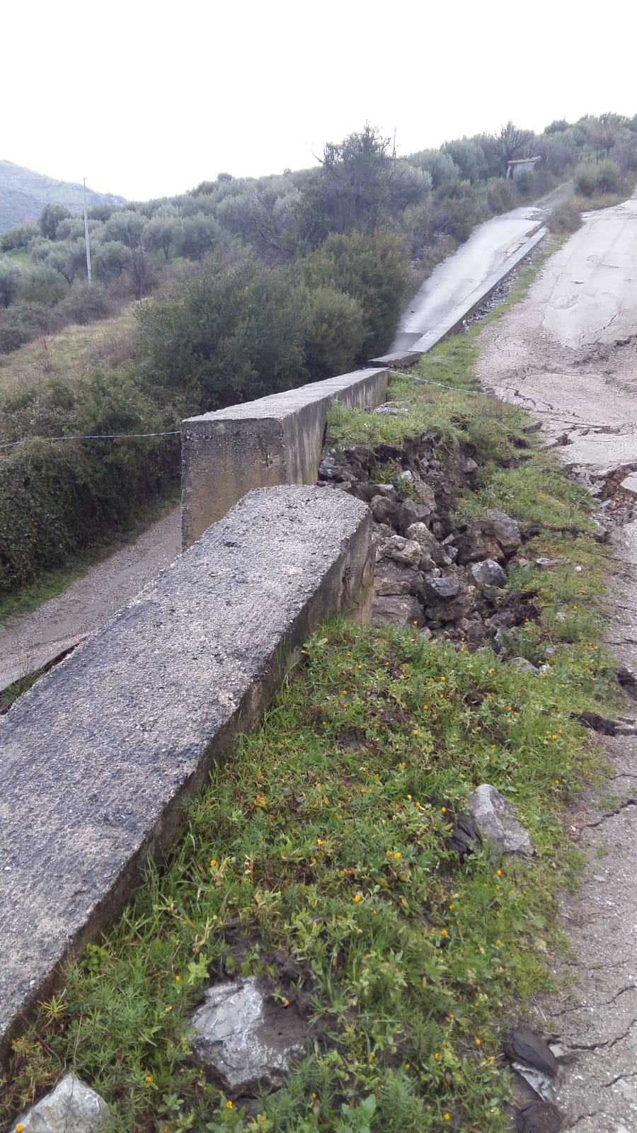 Voragini sulla strada, massi e detriti che precipitano dal costone ed uno smottamento del terreno che interessa un fronte di un paio di centinaio di metri.