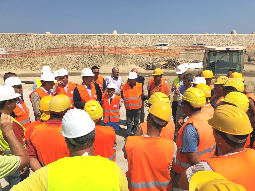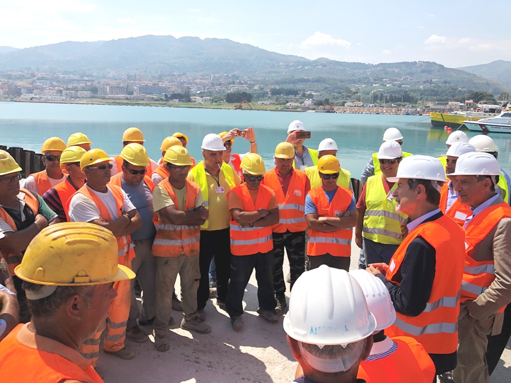 Il presidente Musumeci ha manifestato particolare entusiasmo nella sua visita durante la quale dapprima sono stati illustrati i grafici del progetto, con la proposta di variante di recente ideazione per la modifica della parte di edilizia portuale secondo la visione del cosiddetto “porto di città” quindi si è svolto il sopralluogo presso le aree di cantiere del molo di sopraflutto e della banchina. Lo stesso Presidente si è quindi voluto soffermare a parlare con gli operai impegnati nei lavori cui ha espresso il proprio ringraziamento per l’impegno profuso rivolgendo loro parole di apprezzamento e di speranza per il futuro della terra siciliana.