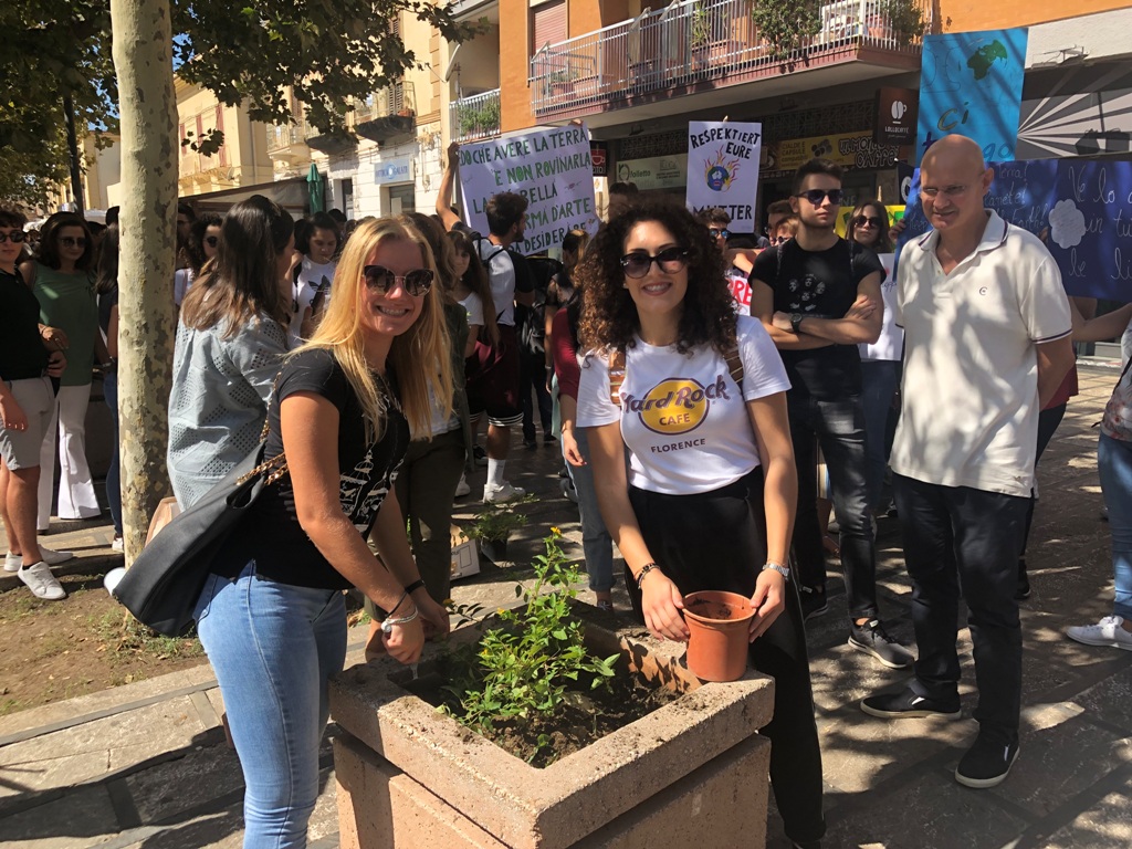 Grande partecipazione degli studenti santagatesi alla manifestazione di piazza Vincenzo Consolo nell’ambito delle iniziative, su scala internazionale, del “Global Strike For Future”, per la sensibilizzazione della popolazione mondiale sul tema dei cambiamenti climatici, promosse dal movimento “Fridays For Future”. Anche l’amministrazione comunale di Sant’Agata Militello ha dunque voluto essere presente al fianco dei giovani. In piazza Consolo sono giunte le nutrite delegazioni di tutti gli istituti superiori santagatesi, accompagnate dai rispettivi docenti, con striscioni e cartelli attraverso i quali sono stati lanciati significativi messaggi sull’importanza di difendere il pianeta partendo anche dai comportamenti quotidiani di rispetto dell’ambiente e dell’ecosistema. Dopo un partecipato momento di riflessione, cui hanno preso parte, accanto agli studenti e ai docenti, il sindaco Bruno Mancuso e gli assessori Ilaria Pulejo ed Antonio Scurria, nelle fioriere di piazza Vincenzo Consolo sono state quindi messe a dimora dagli stessi ragazzi, grazie alla collaborazione del personale comunale, 15 piantine di “lantana”, messe a disposizione dall’amministrazione comunale. “Giornate come queste sono importanti per tutti noi per riflettere e prendere coscienza, grazie anche all’attività dei movimenti sorti su scala internazionale, della battaglia comune che ci unisce – ha detto il sindaco Bruno Mancuso agli studenti –. Giorno per giorno leggiamo purtroppo di catastrofi ambientali che possiamo contribuire ad evitare solo se miglioriamo il nostro livello culturale e la nostra coscienza rispetto i temi ambientali. Una riflessione che riguarda tutti e che ci deve accompagnare sempre, perché in gioco c’è davvero la sopravvivenza non solo nostra ma soprattutto delle generazioni future su questa terra”. L’assessore alla pubblica istruzione Ilaria Pulejo ha quindi ribadito il grazie a tutti gli studenti, ai dirigenti scolastici, i docenti e quanti hanno preso parte all’iniziativa. “Oggi è una giornata che davvero smuove le coscienze di tutti – ha detto l’assessore Pulejo –. Chiedo a tutti i ragazzi di prendersi l’impegno oggi di fare qualcosa di concreto per il nostro pianeta, azioni o gesti, anche i più banali e semplici, che possano contribuire giorno dopo giorno a salvare questo nostro pianeta”.