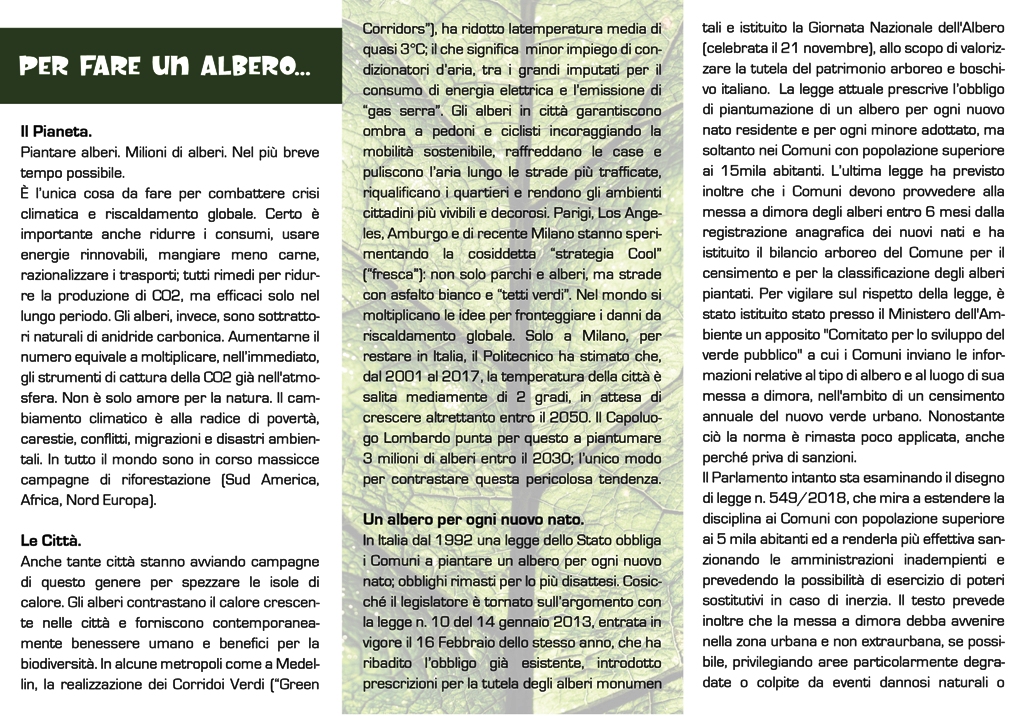 Tutti i comuni con popolazione superiore a 15mila abitanti sono obbligati dalla legge 10/2013 a piantare un albero per ogni nuovo nato – sottolineano i promotori – ma presto l’obbligo potrebbe essere esteso ai Comuni con popolazione superiore ai 5mila abitanti, quindi anche a Sant’Agata Militello”.