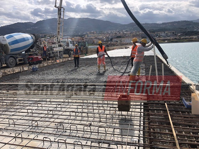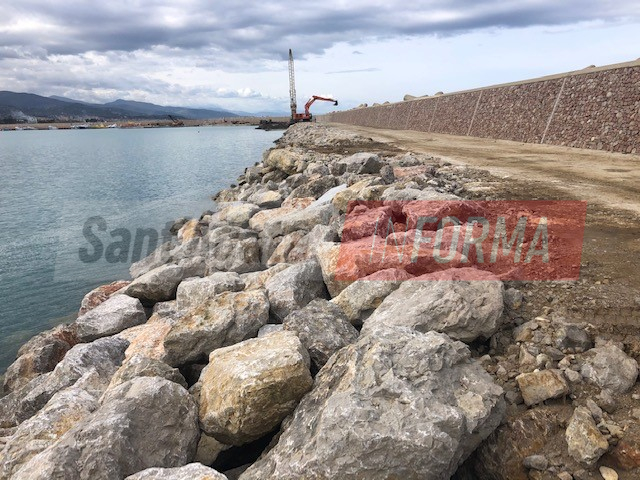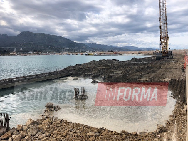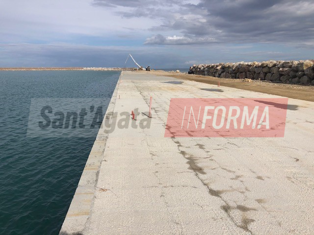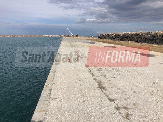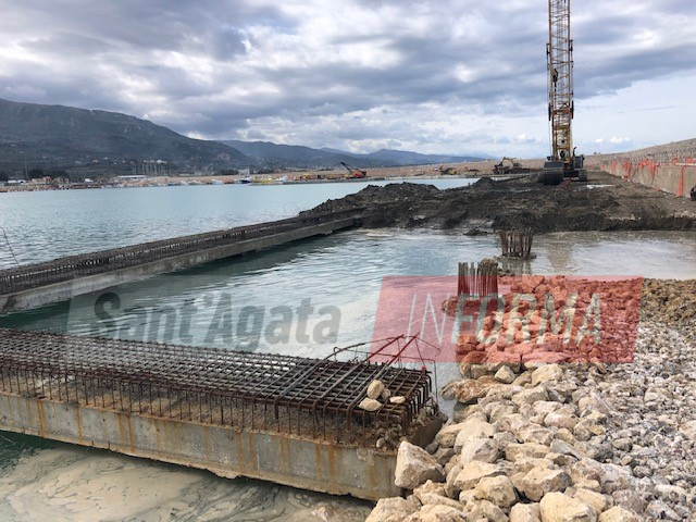 Per il molo di sottoflutto sono state completate la realizzazione dei pali, della scarpata e della pista, con il completamento del molo e di gran parte della diga, mentre è ancora in corso la realizzazione del muro paraonde. Per il sopraflutto realizzati invece tutti i pali ed il riempimento mentre sono stati eseguiti gli intasamenti con malte speciali nel campo prova interessato dal sifonamento, fenomeno che sta determinando da tempo un rallentamento delle procedure su quella parte di infrastruttura e per la cui soluzione, già lo scorso dicembre, è stata approvata un’apposita convenzione tra il dipartimento d’ingegneria civile e architettura dell’Università degli studi di Catania ed il Comune di Sant’Agata Militello per l’acquisizione del servizio di consulenza scientifica.