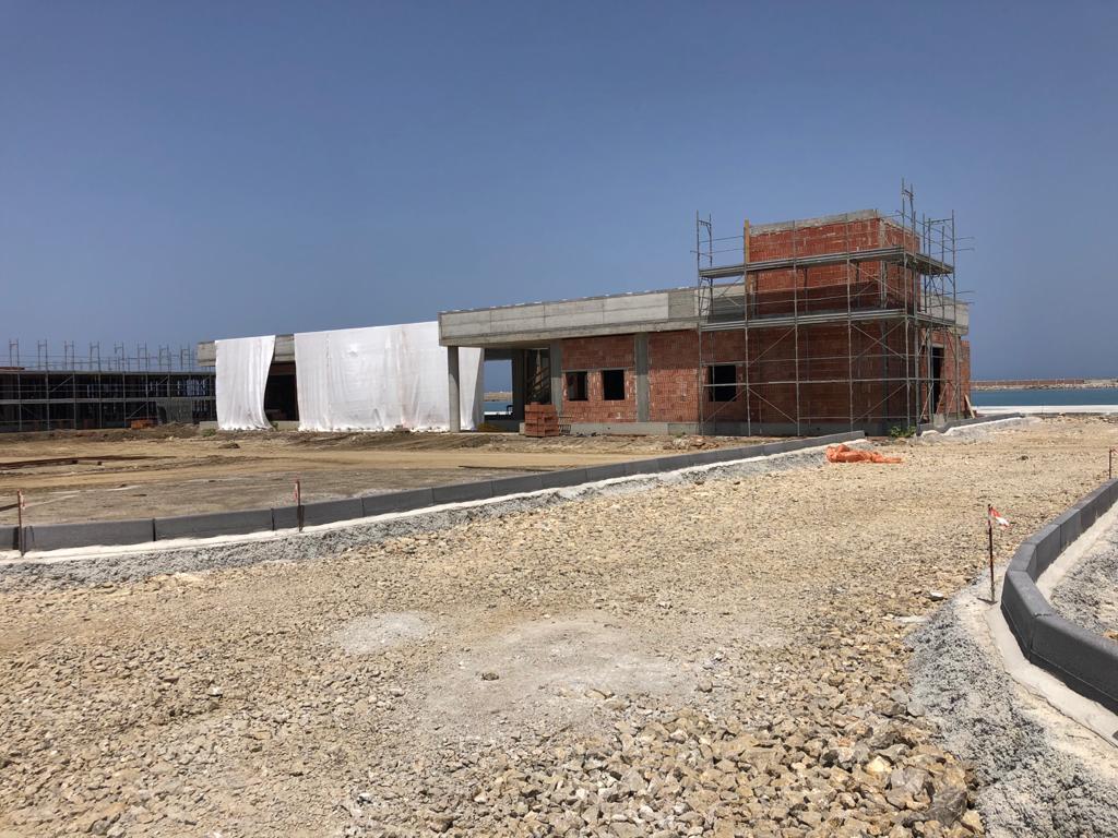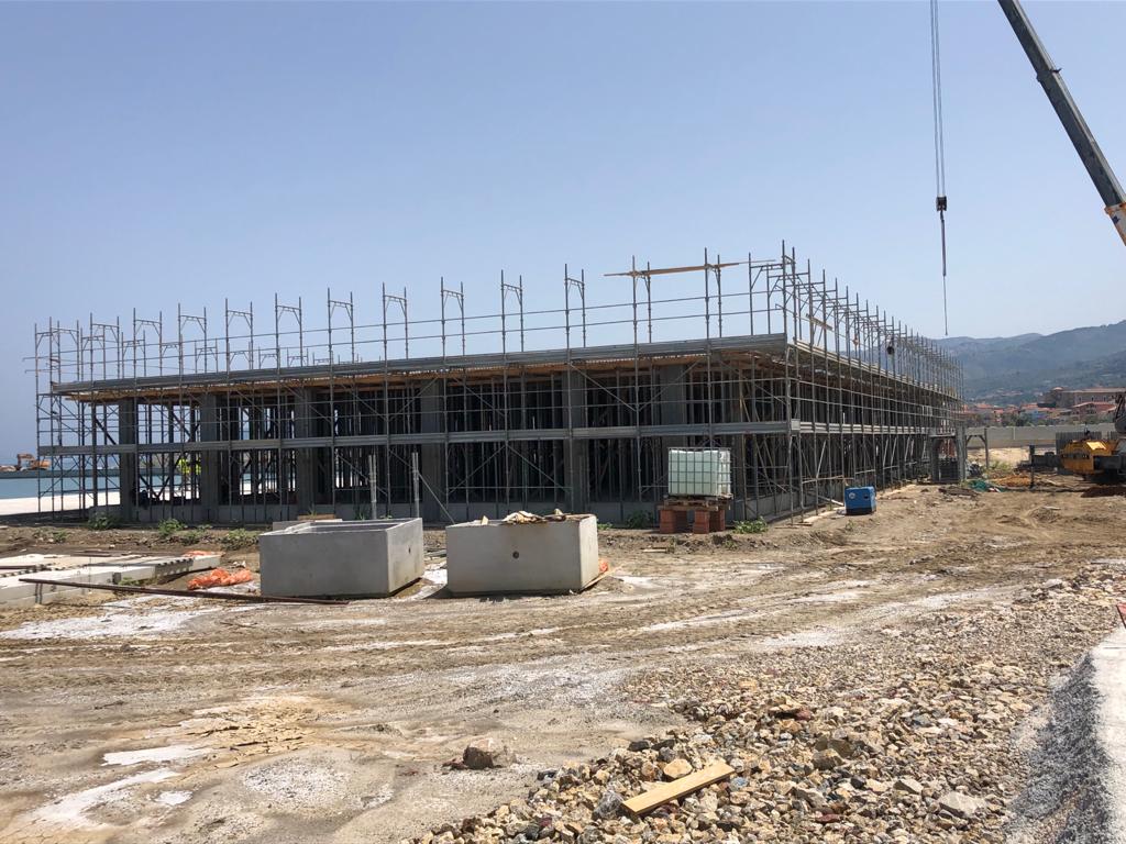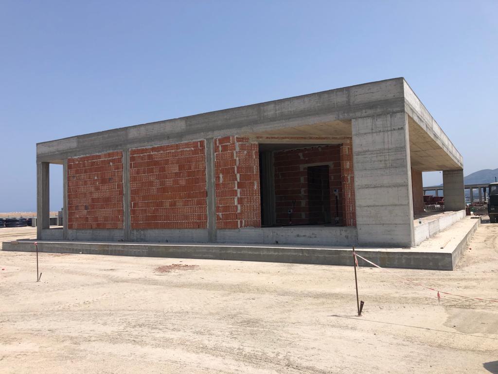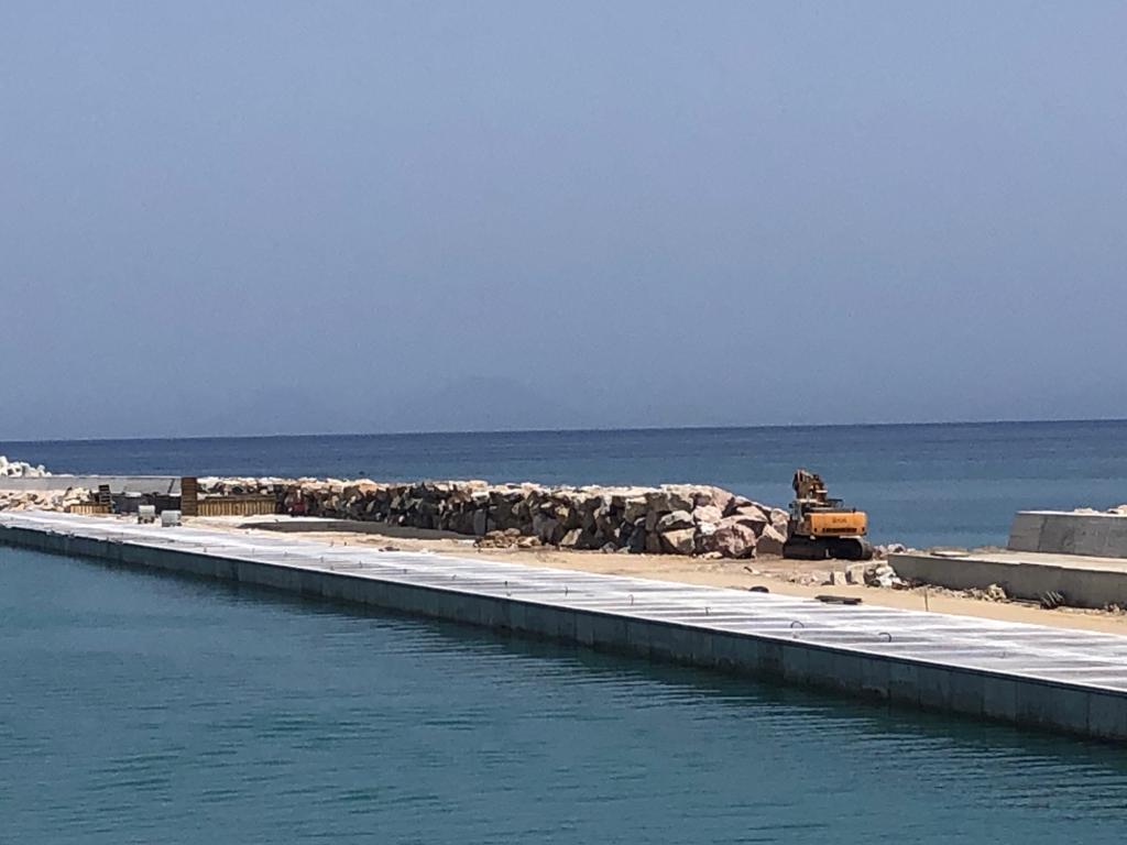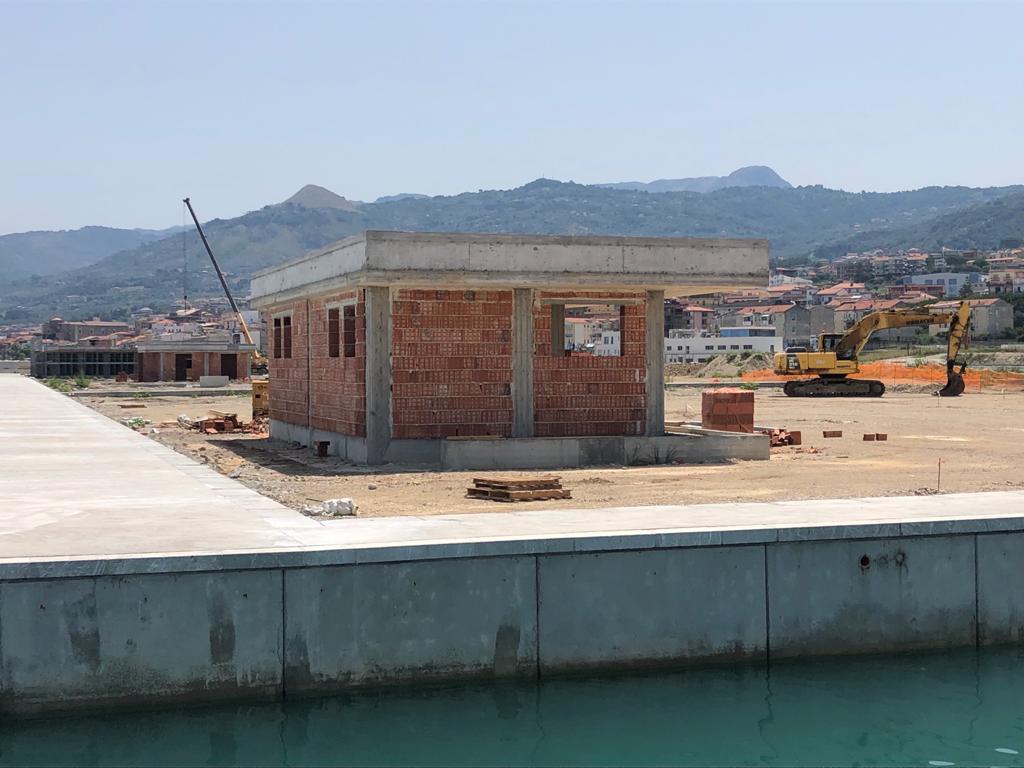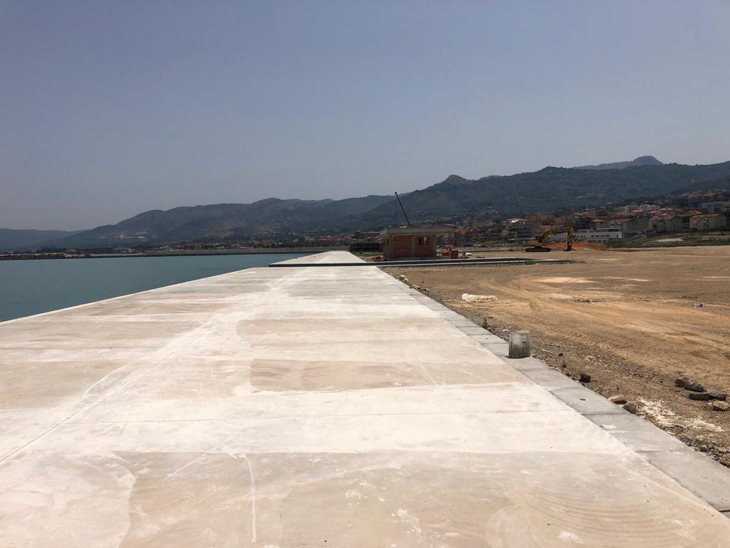 Procedono a passo spedito le opere a terra che vedono completati pali, fondazioni e pilastri del club nautico, per cui si sta realizzando il solaio di copertura, del ristorante bar e del capannone officina. Completate anche le strutture in cemento armato per servizi igienici, presidio antincendio, punto ristoro e del circolo pescatori, della vasca idrica e del canale Alessi all’interno dell’area portuale. In corso le lavorazioni per le sistemazioni dell’area dietro banchina e della viabilità interna. In fase di ultimazione anche la diga di sottoflutto, cui si stanno pian pano aggiungendo, rimangono da coprire una cinquantina di metri, i massi di quarta categoria mancanti.