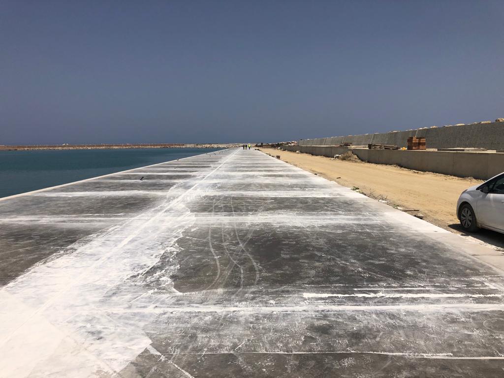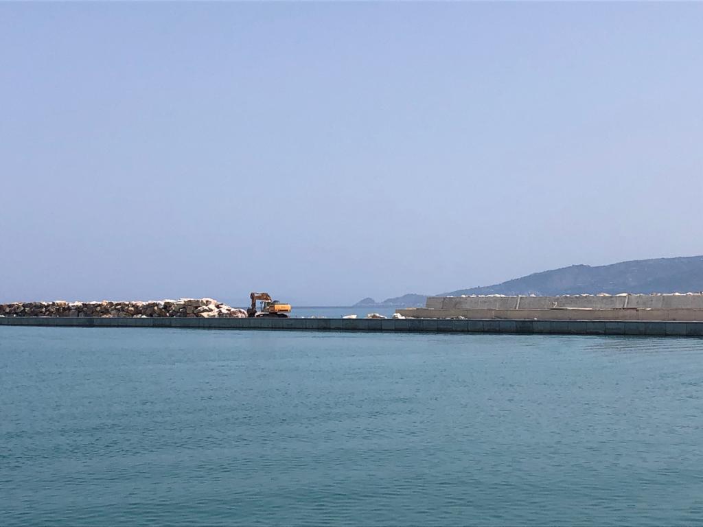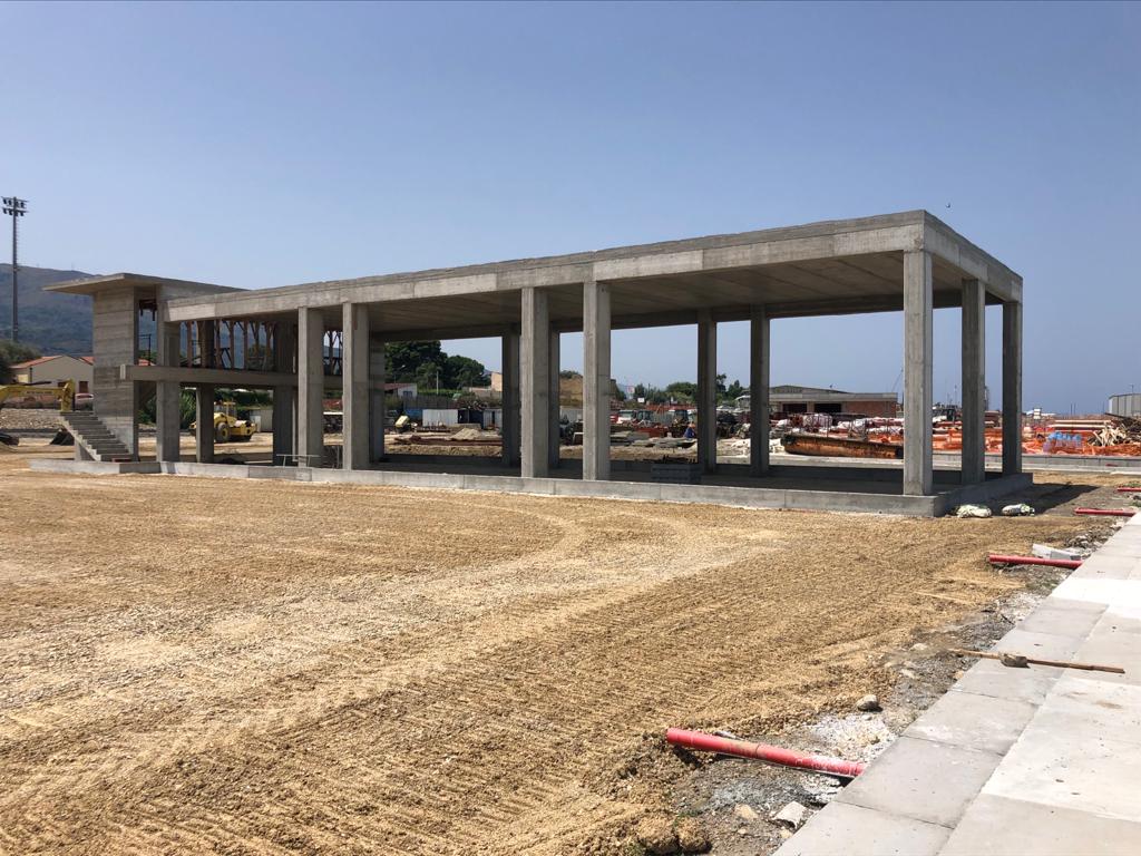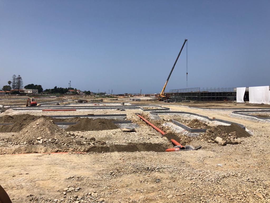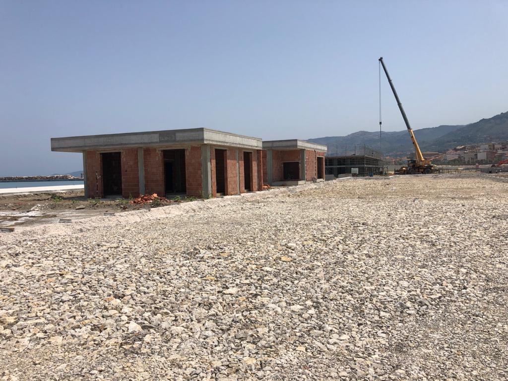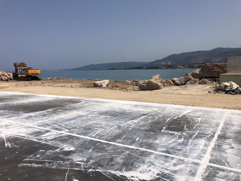 Procedono a passo spedito le opere a terra che vedono completati pali, fondazioni e pilastri del club nautico, per cui si sta realizzando il solaio di copertura, del ristorante bar e del capannone officina. Completate anche le strutture in cemento armato per servizi igienici, presidio antincendio, punto ristoro e del circolo pescatori, della vasca idrica e del canale Alessi all’interno dell’area portuale. In corso le lavorazioni per le sistemazioni dell’area dietro banchina e della viabilità interna. In fase di ultimazione anche la diga di sottoflutto, cui si stanno pian pano aggiungendo, rimangono da coprire una cinquantina di metri, i massi di quarta categoria mancanti.