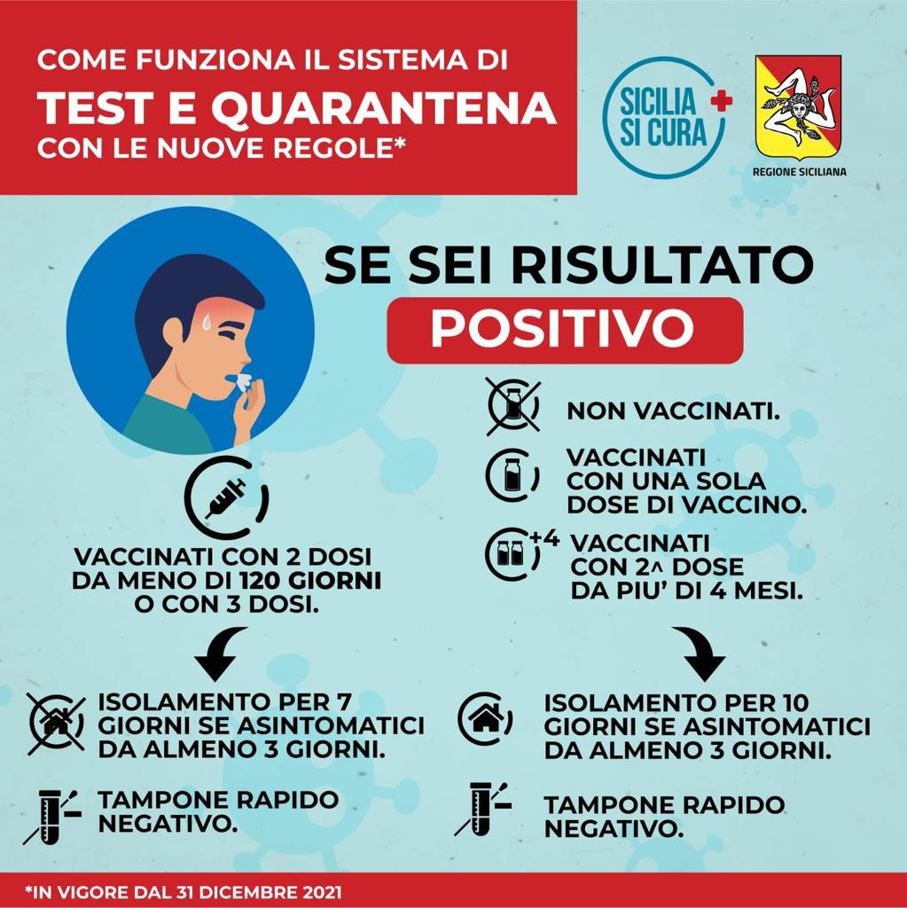 – Soggetti vaccinati terza dose o che abbiano completato il ciclo vaccinale primario (due dosi) nei 120 giorni precedenti è previsto l’isolamento di 7 giorni e test antigenico rapido al termine del periodo. In caso di esito positivo, ulteriore tampone rapido programmato a 7 giorni. Qualora quest’ultimo risultasse ancora positivo dovrà essere ripetuto dopo ulteriori 3 giorni.