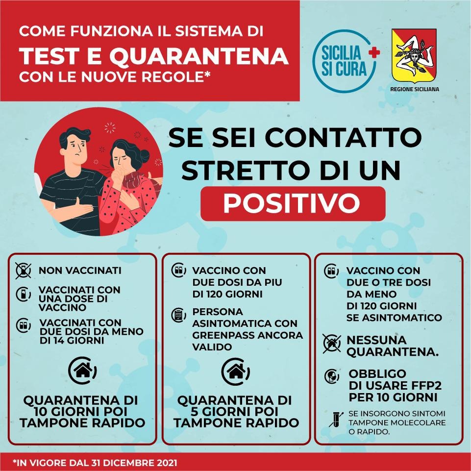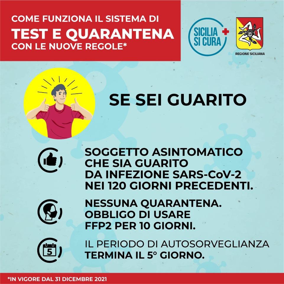 – Soggetti che abbiano completato il ciclo vaccinale primario da più di 120 giorni, e che abbiano tuttora in corso di validità il green pass, o guariti da più di 120 giorni è prevista la quarantena di 5 giorni e test antigenico rapido al termine del periodo con risultato negativo.