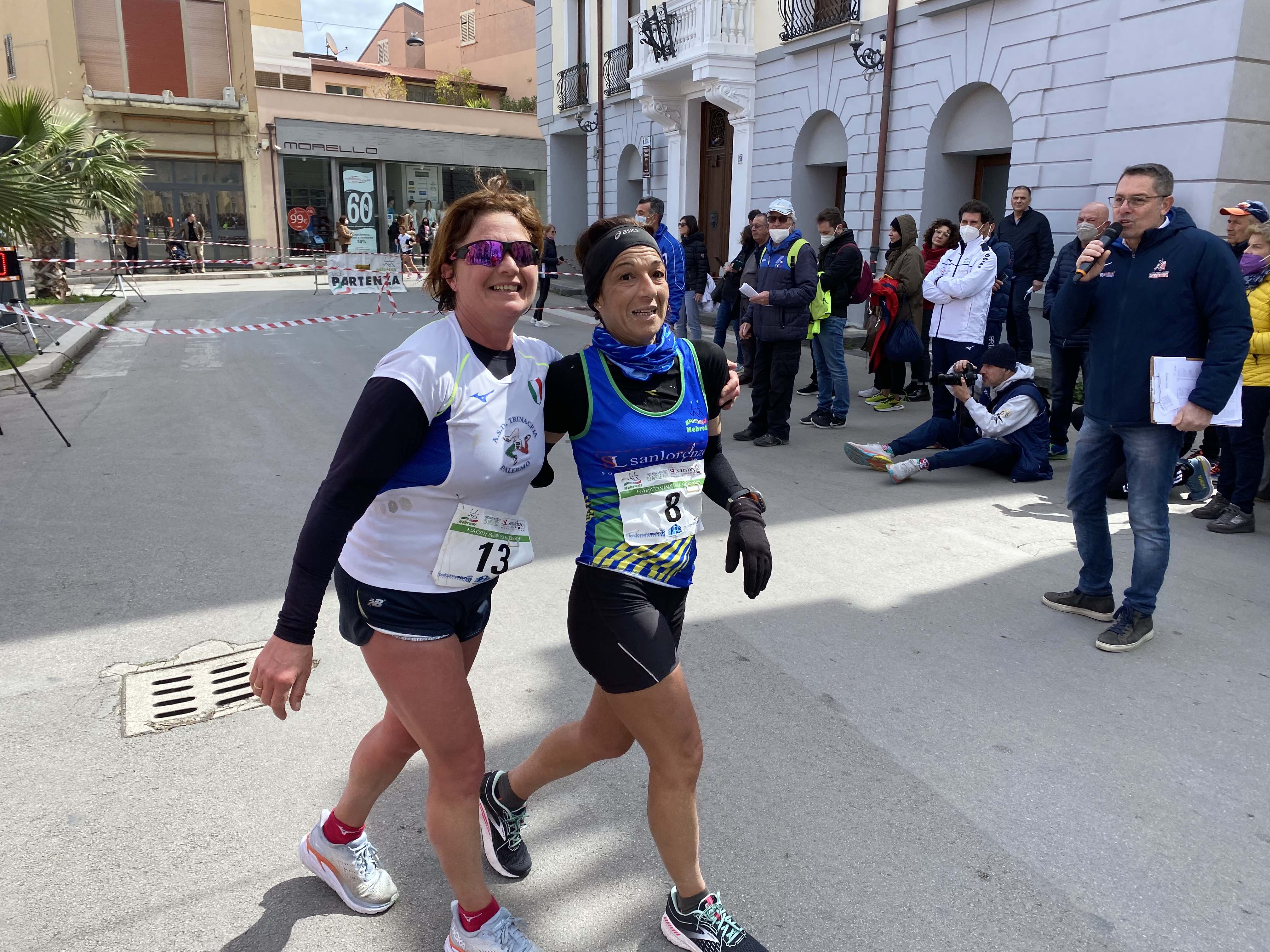 Tra le donne, primo posto per l’atleta ucraina, residente a Messina, NADIYA SUKHARYNA (A.S. DIL. TORREBIANCA) con il tempo di 1h 28’10”, poi MARIA GRAZIA BILELLO (A.S.DIL. UNIVERSITAS PA) con il tempo di 1h 28’57” ed infine MARIA LA BARBERA (A.S.D. TRINACRIA PALERMO) con il tempo di 1h 38’37”.