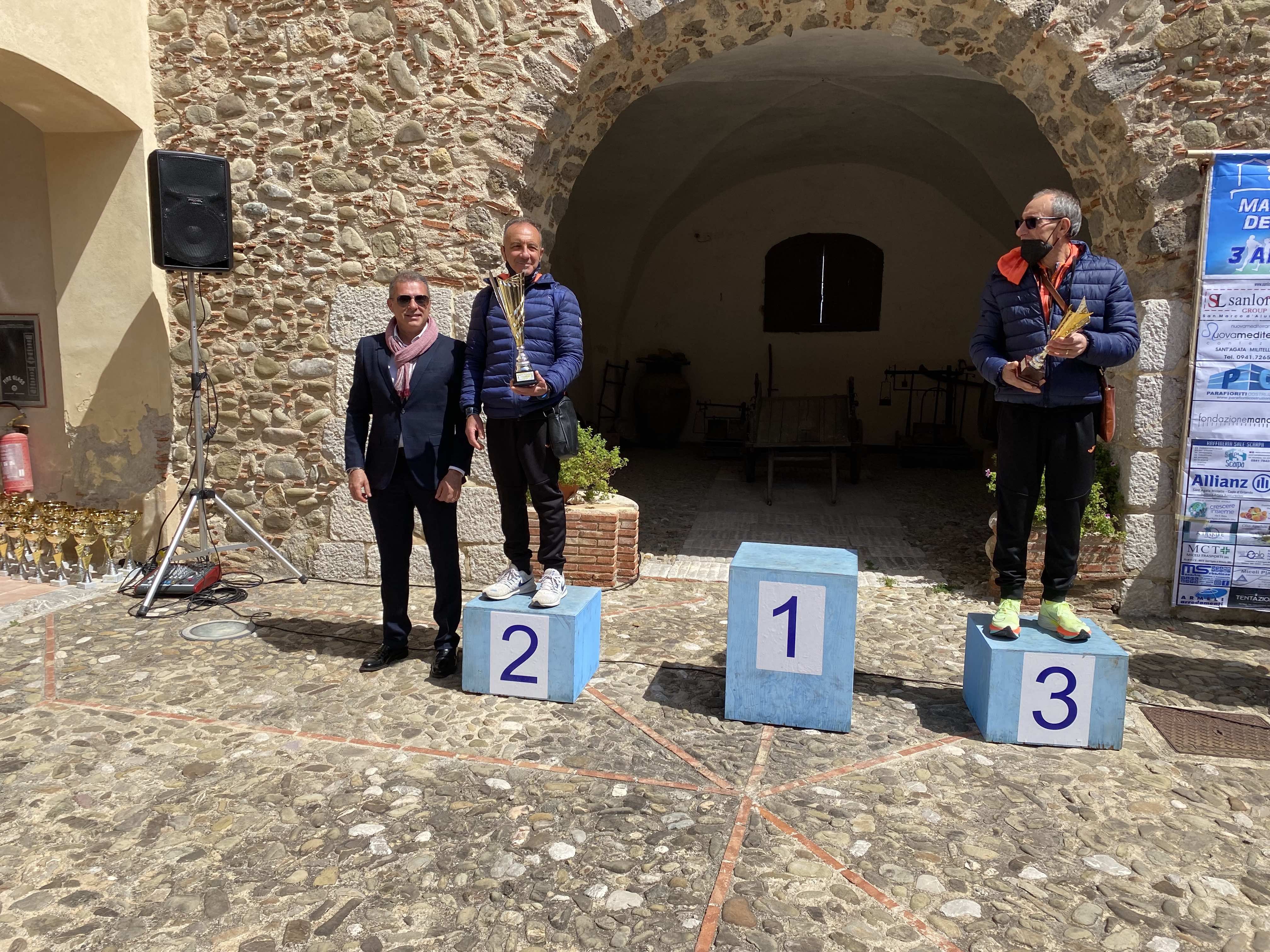 A consegnare i premi al Castello Gallego, il sindaco di Sant’Agata Militello Bruno Mancuso, l’assessore Antonio Scurria, il presidente del Parco dei Nebrodi Domenico Barbuzza ed i rappresentanti dell’Atletica Nebrodi. Presenti anche i familiari di Maurizio Gorgone che hanno consegnato le coppe ai vincitori del Memorial.