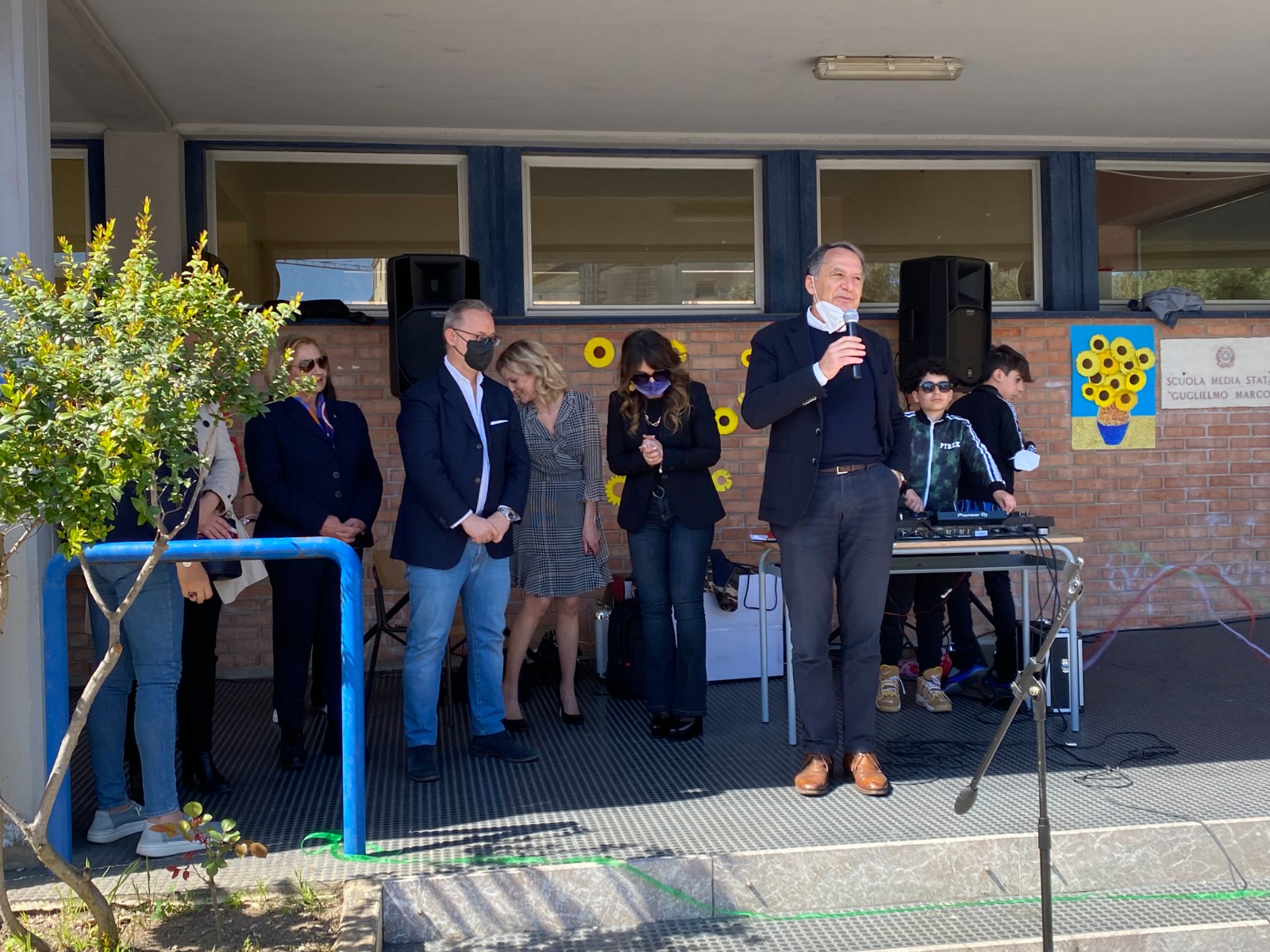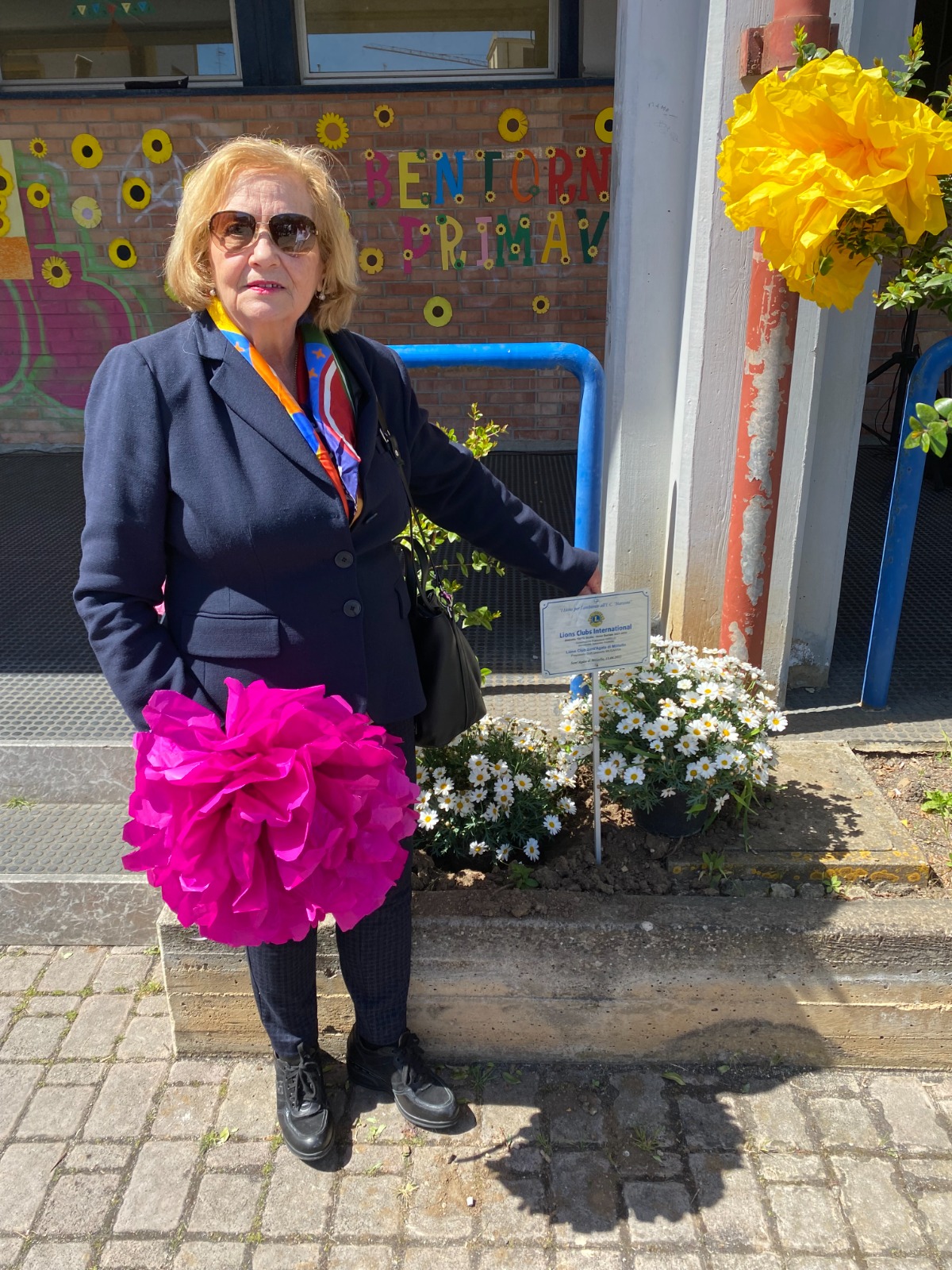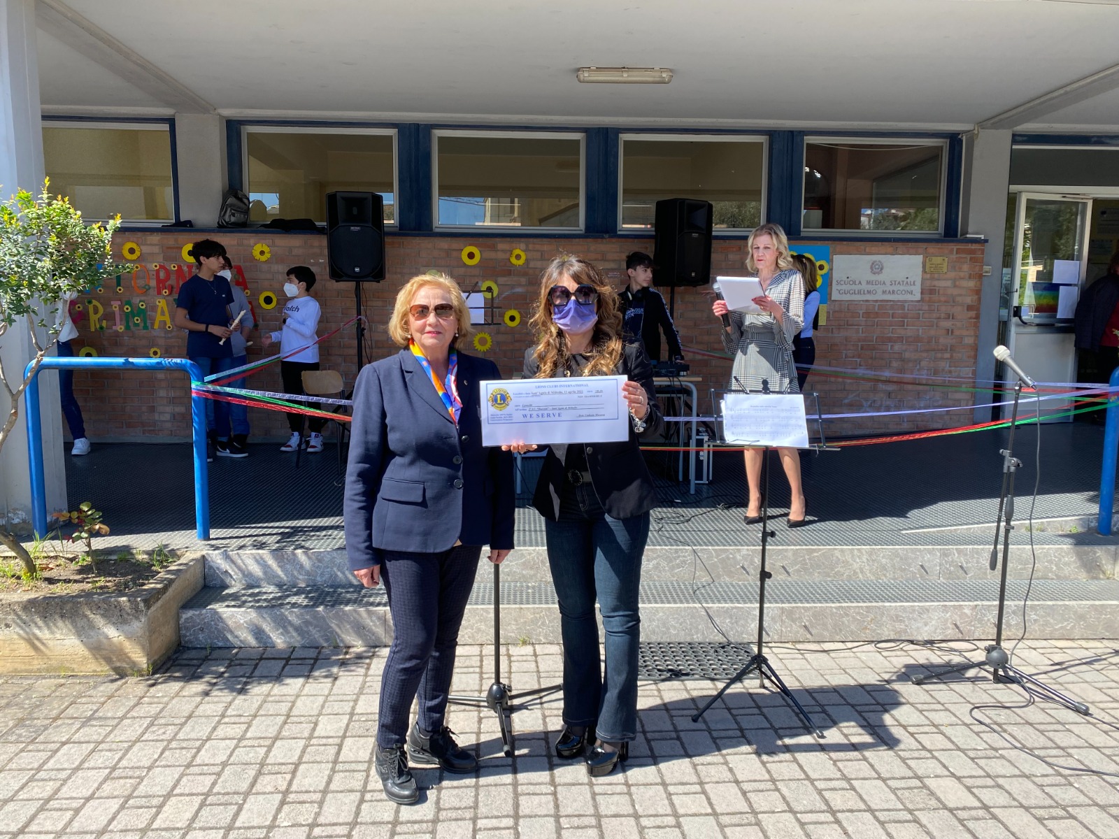 Quest’ anno un contributo in denaro , sotto forma di un assegno simbolico è stato donato alla preside Bollaci dal Lions Club rappresentato dalla segretaria, membro del direttivo del sodalizio, prof. ssa Elena Franzone, che servirà per l’acquisto di piantine di fiori che saranno piantumate all’interno di un’ aiuola . Consegnata inoltre una targa del sodalizio di servizio, a testimonianza dell’ impegno e della sensibilità del Club in favore dell’ ambiente.