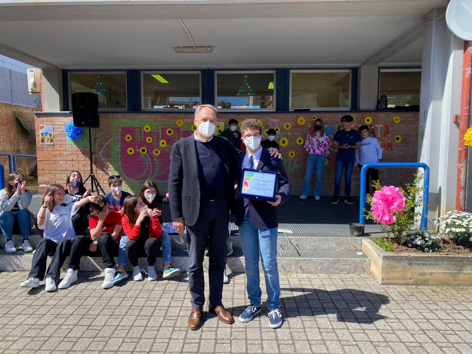 Il sindaco Mancuso ha consegnato una targa, a nome dell’Amministrazione Comunale, al vincitore dell’edizione di questo anno: Luca Cino, della classe III D della scuola secondaria di I grado. Premiate con una targa per i “ Giochi matematici”,organizzati dall’ università Bocconi : per la Categoria CE: Chiara Oriti , per la Categoria C1: Alessandro Rifici, classe Il B e per la Categoria C2: Costanza Bonina, classe III A .