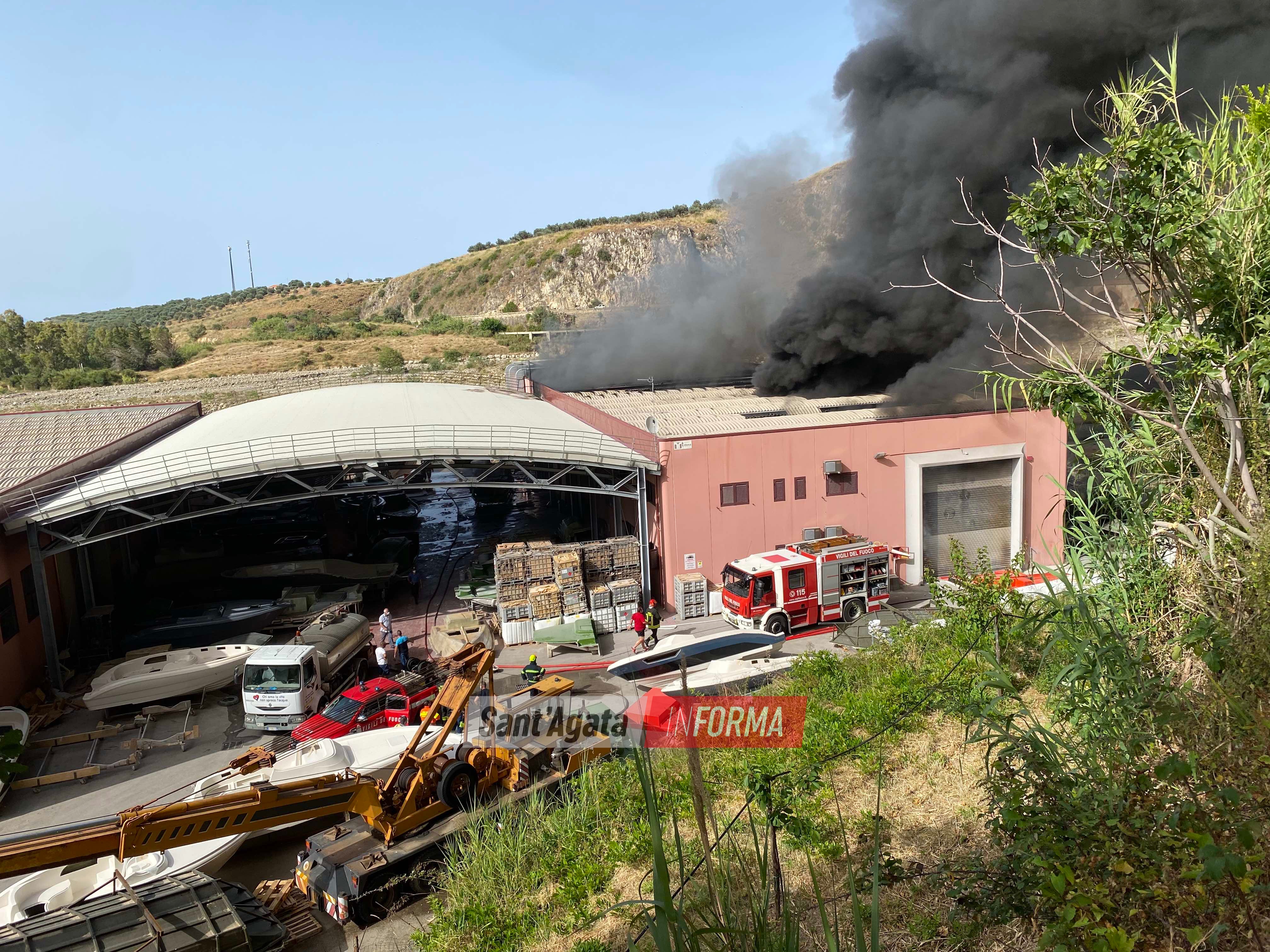 I materiali altamente infiammabili, le vernici, i solventi e gli altri composti che si trovavano all’interno del cantiere avvolto dalle fiamme hanno sprigionato una intensa ed altissima nube di fumo nero avvertita anche a diversi chilometri di distanza. Sono intervenute le squadre dei Vigili del Fuoco del distaccamento di Sant’Agata Militello e di Patti, i volontari della Protezione civile di Sant’Agata e Torrenova e le autobotti comunali. Sul posto i Carabinieri della compagnia di Sant’Agata Militello ed una pattuglia del commissario di Polizia, la Polizia locale e l’ambulanza del 118.