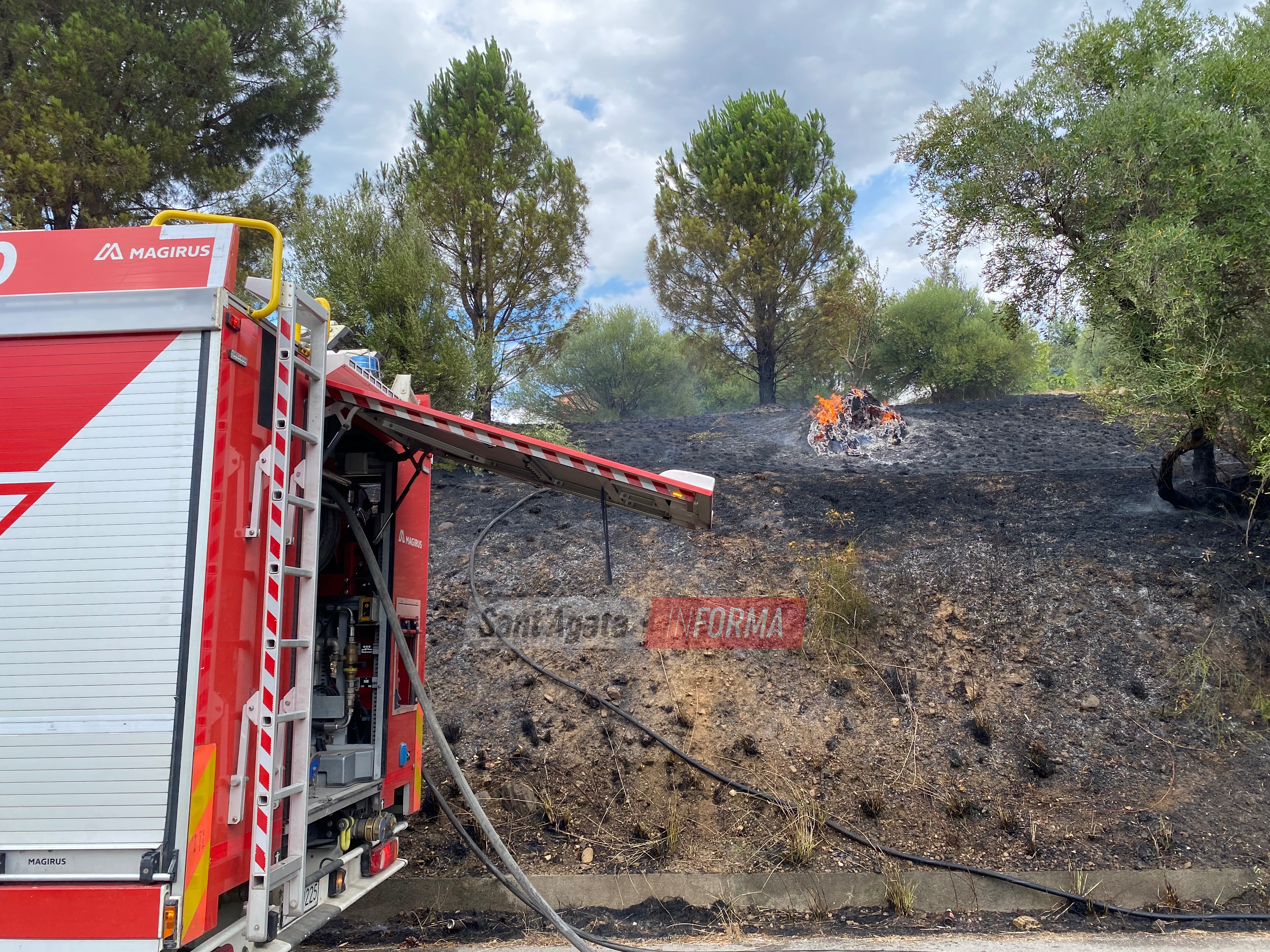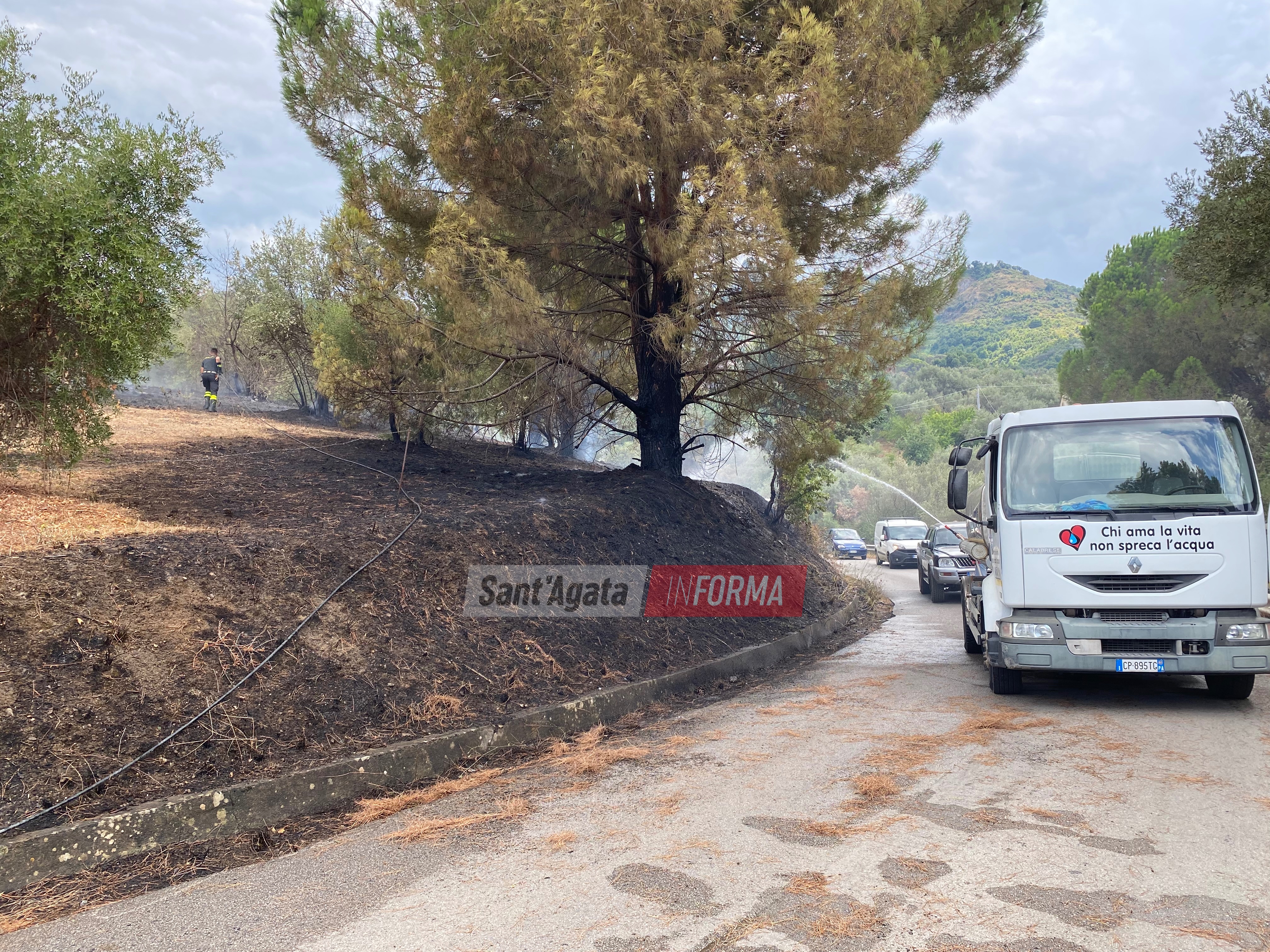 Un incendio è divampato nel primo pomeriggio di oggi a Sant’Agata Militello, interessando una fascia di terreno a ridosso della strada provinciale Scafone Cipollazzi, tra le contrade Muti e Pairò.