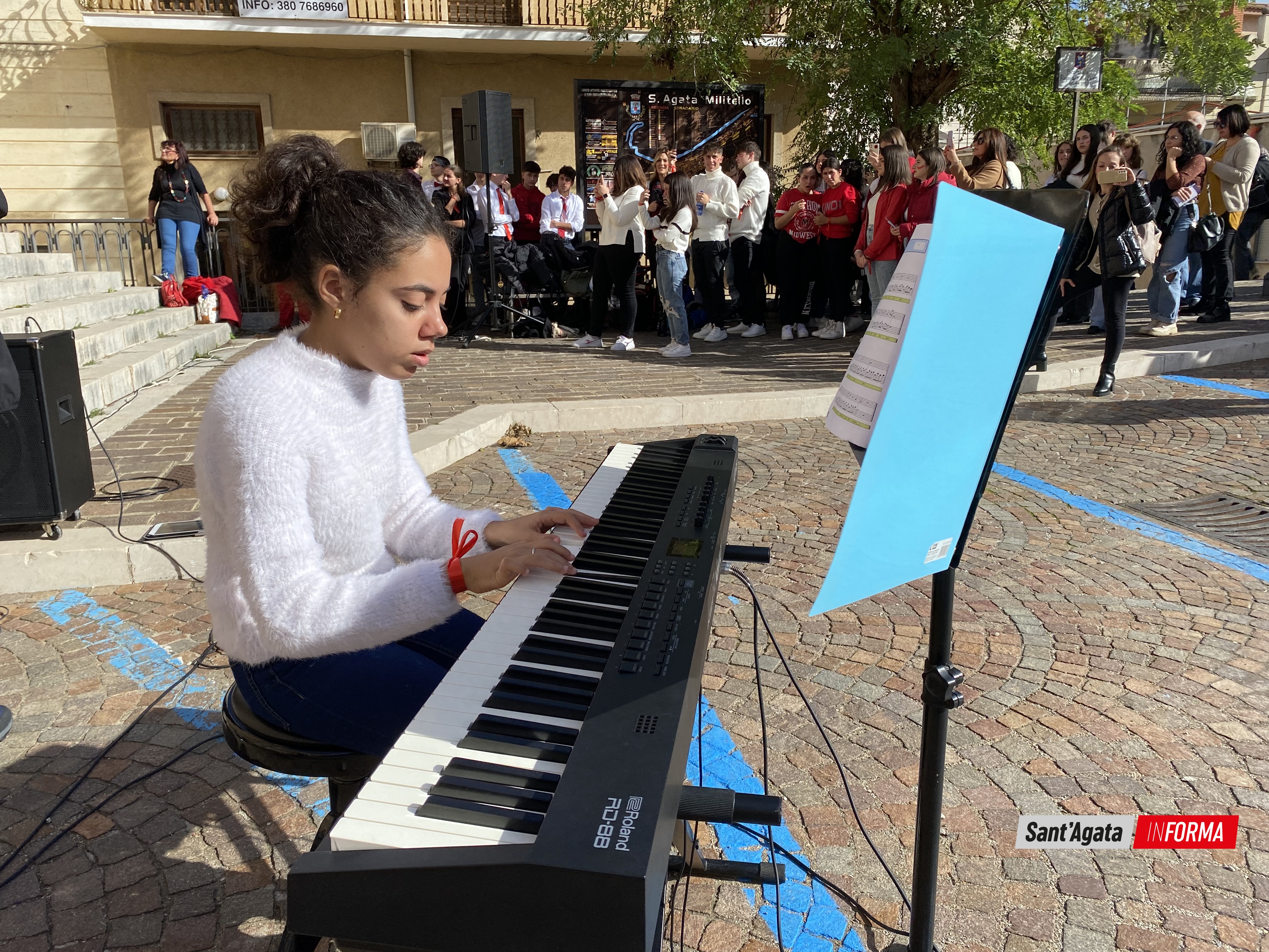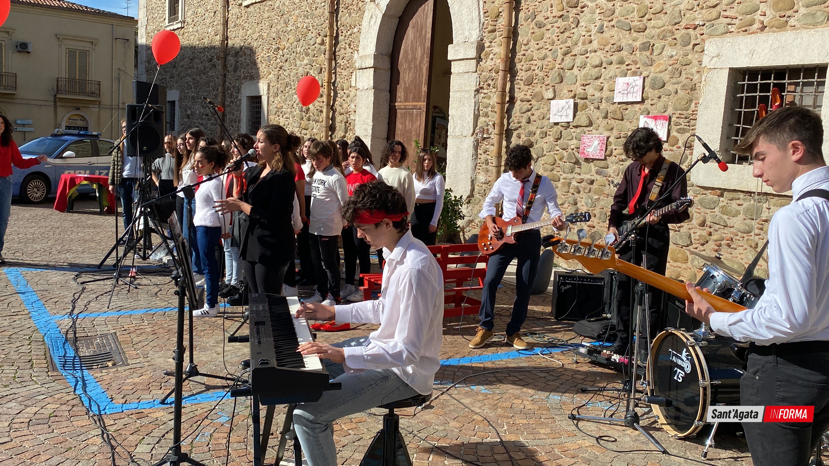 In apertura della giornata, che gli organizzatori hanno voluto dedicare in particolare alle donne iraniane, sono intervenuti il sindaco di Sant’Agata Militello Bruno Mancuso, il presidente del Parco dei Nebrodi Domenico Barbuzza, le dirigenti dei tre istituti superiori santagatesi, Tamara Micale (Itis), Larissa Bollaci (Liceo) e Antonietta Emanuele (Itet). Ad intervenire anche il Dott- Michele Alessandro La Guidara, dirigente del commissariato di Polizia di Sant’Agata Militello presente quest’oggi in piazza come ogni anno per la campagna nazionale di sensibilizzazione “Questo non è amore”, che ha visto la distribuzione di materiale informativo.