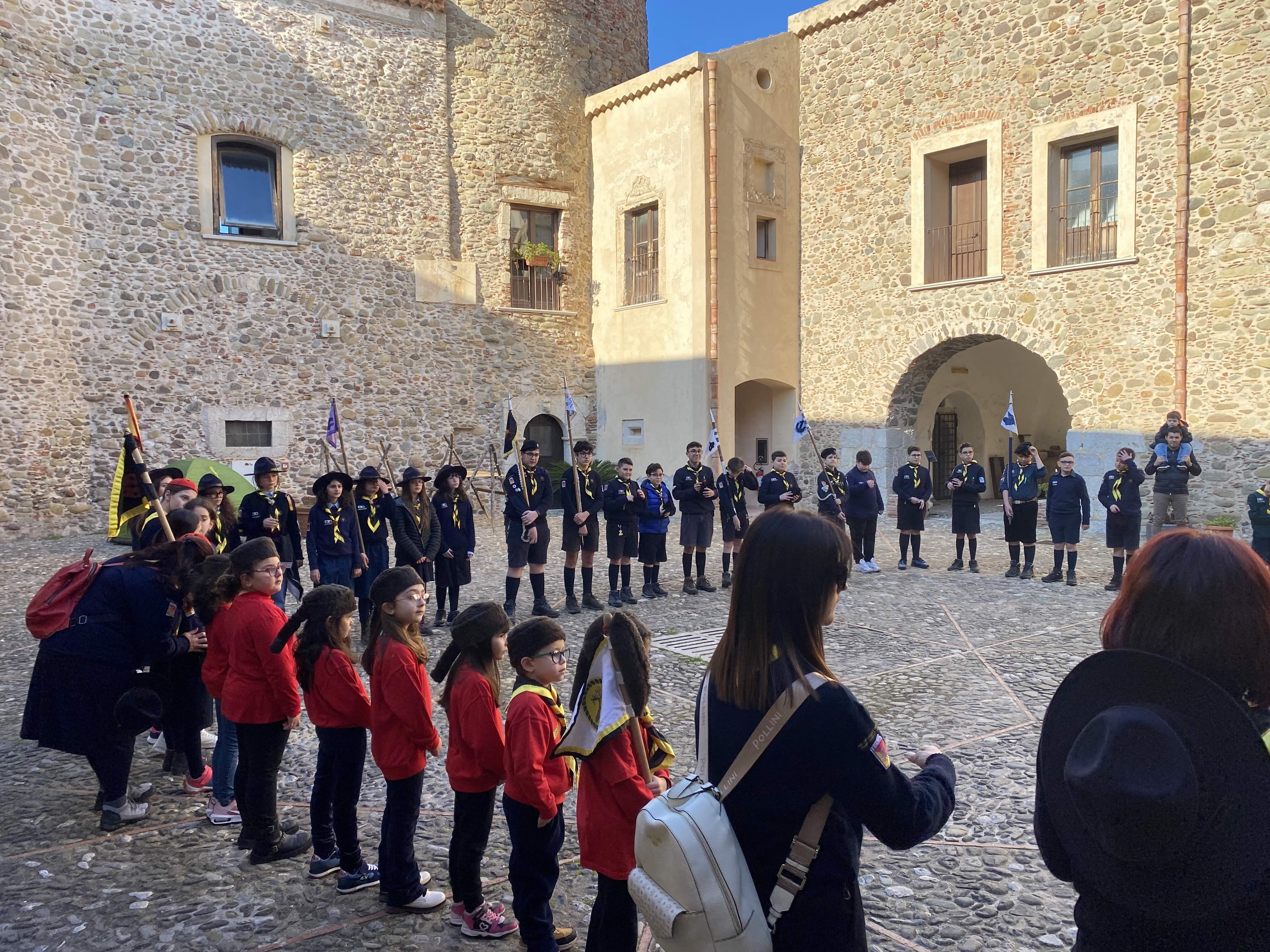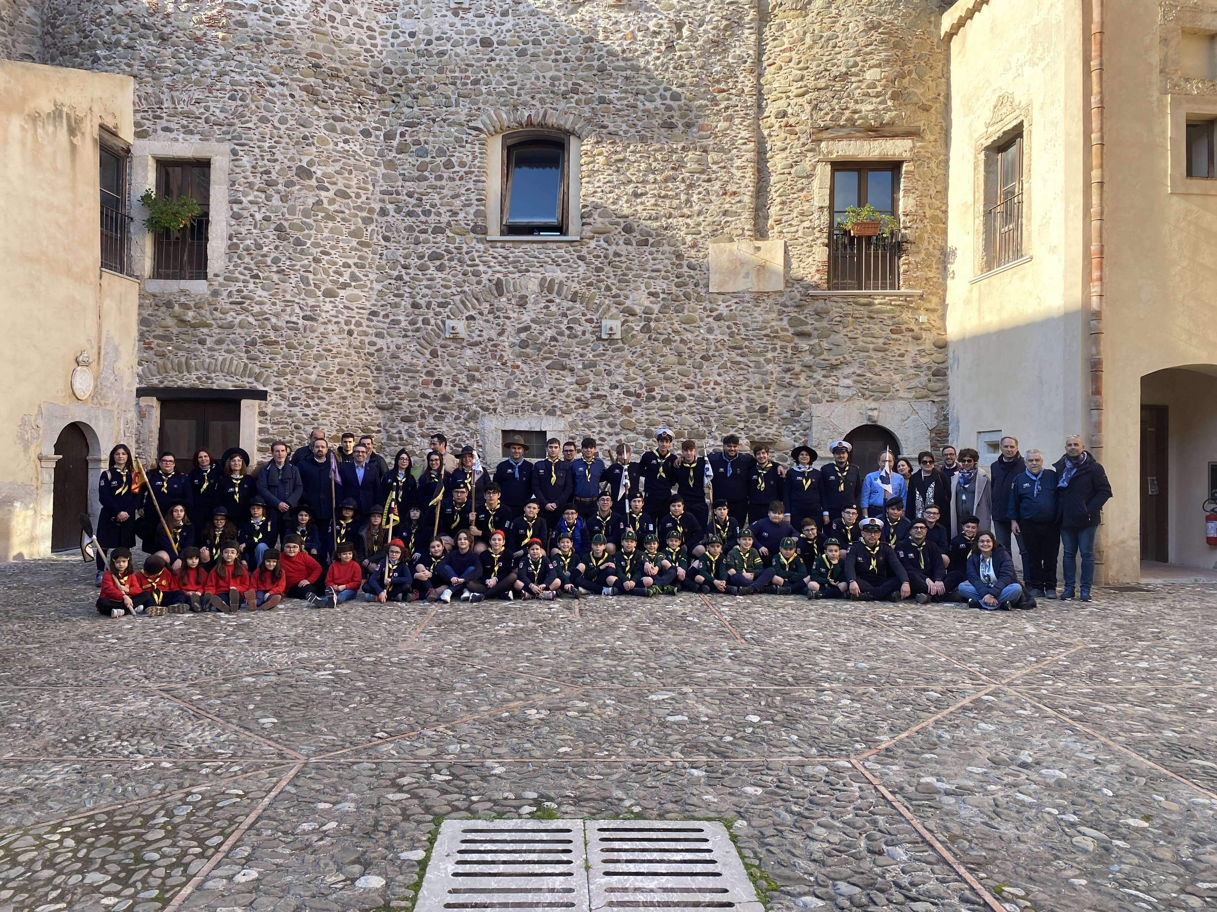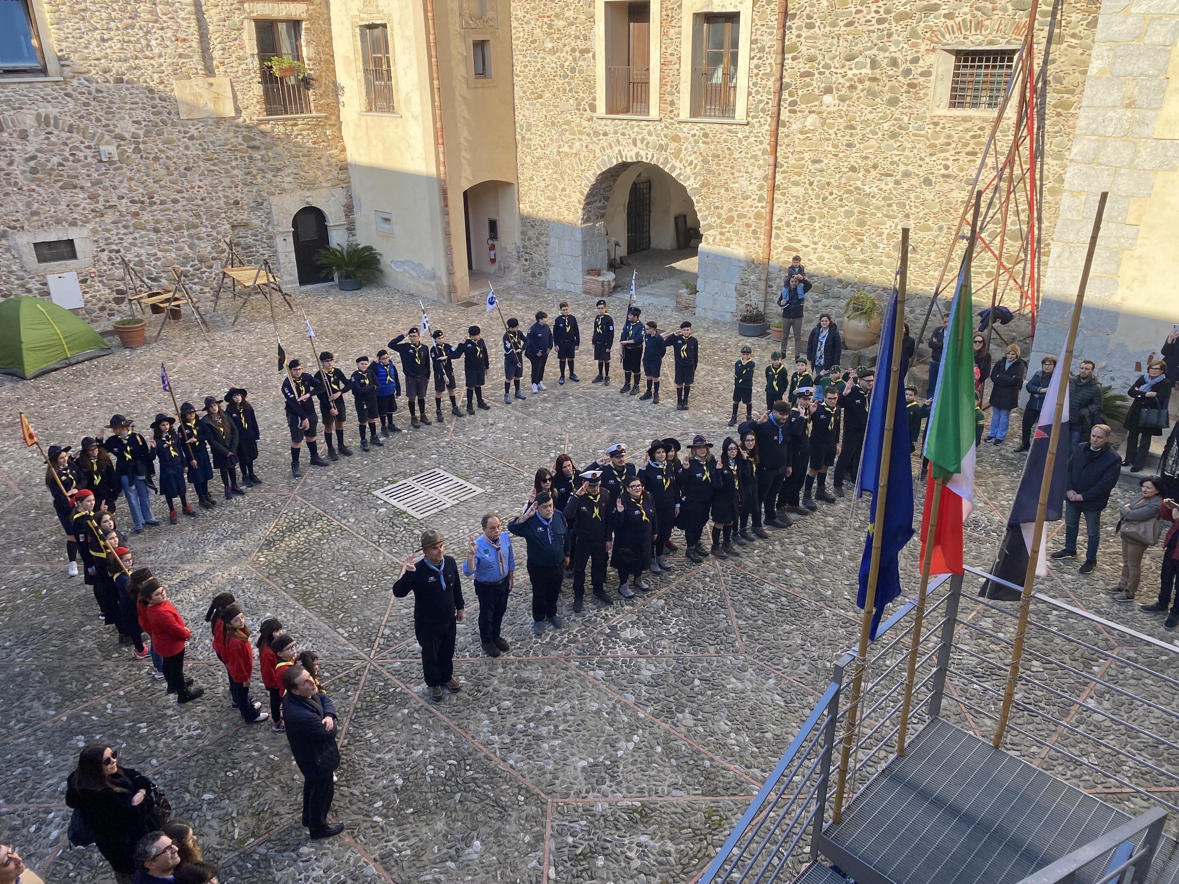 Nel pomeriggio di sabato 22 febbraio al castello c’è stato quindi l’incontro tra ragazzi e ragazze, bambine e bambini che animano oggi il gruppo scout santagatese e quelli che invece nel passato hanno intrecciato il loro cammino di vita con il mondo dello scoutismo, Un momento particolarmente suggestivo, aperto dal “quadrato” del gruppo e dal solenne “issa bandiera”.