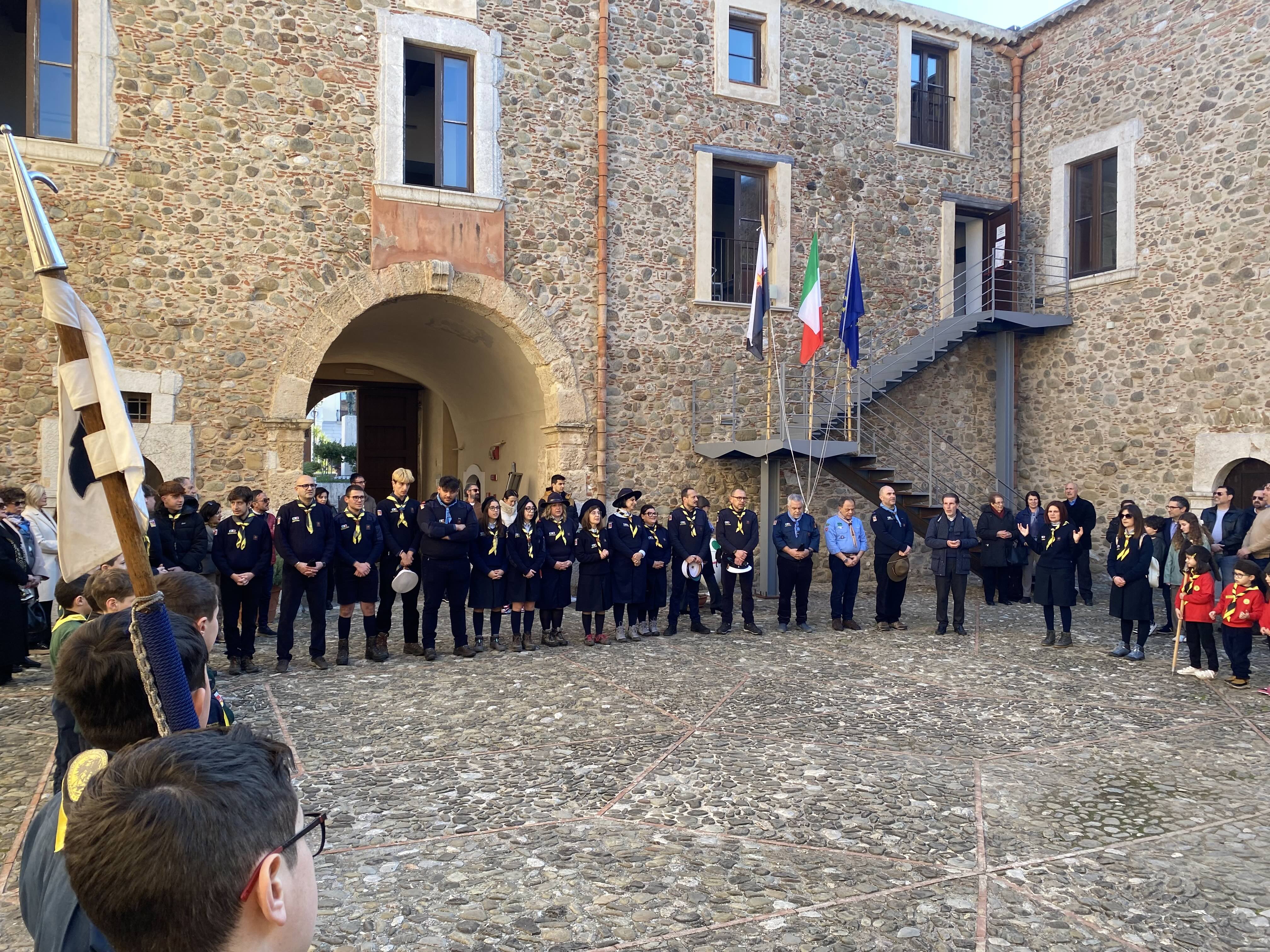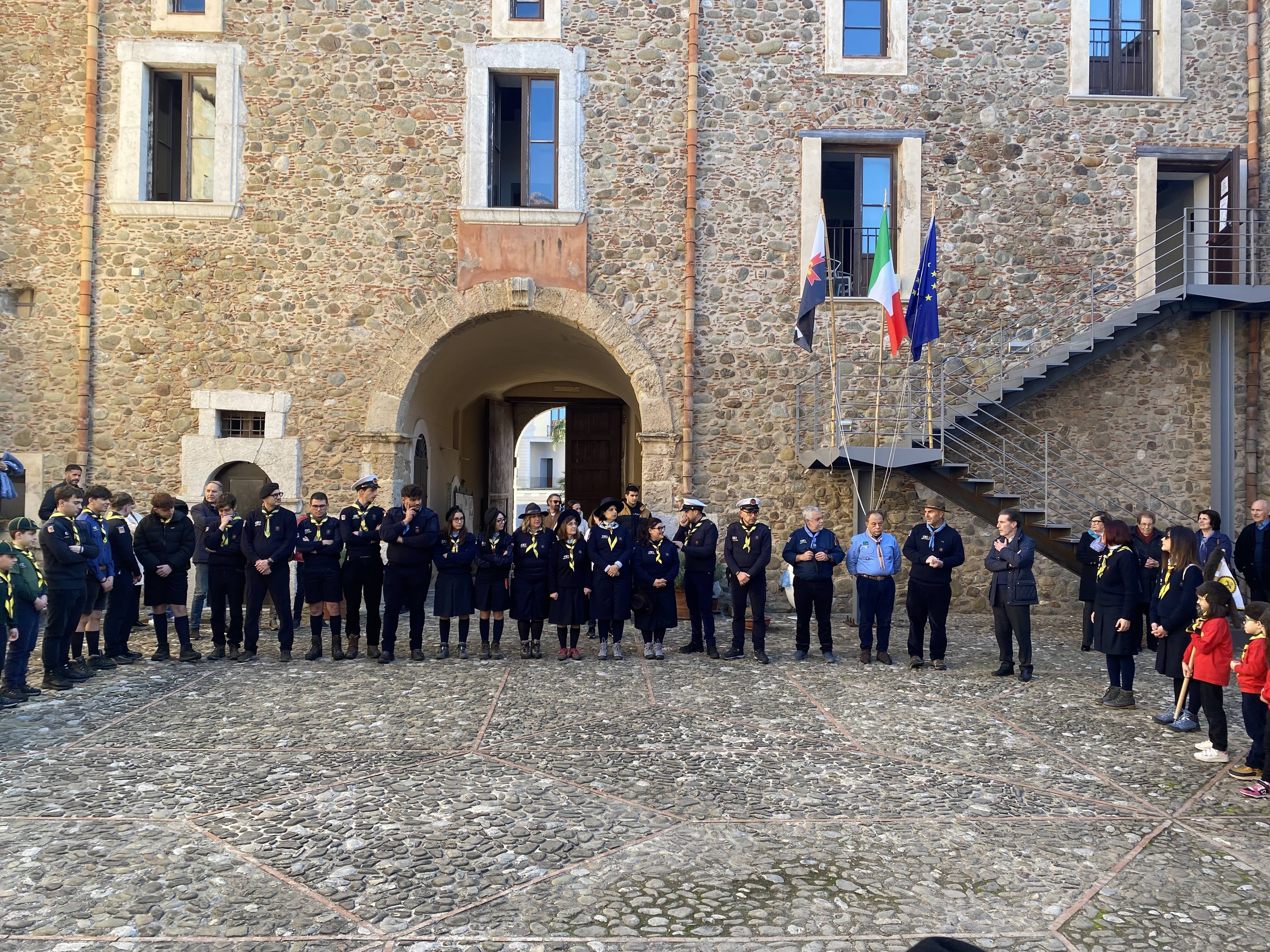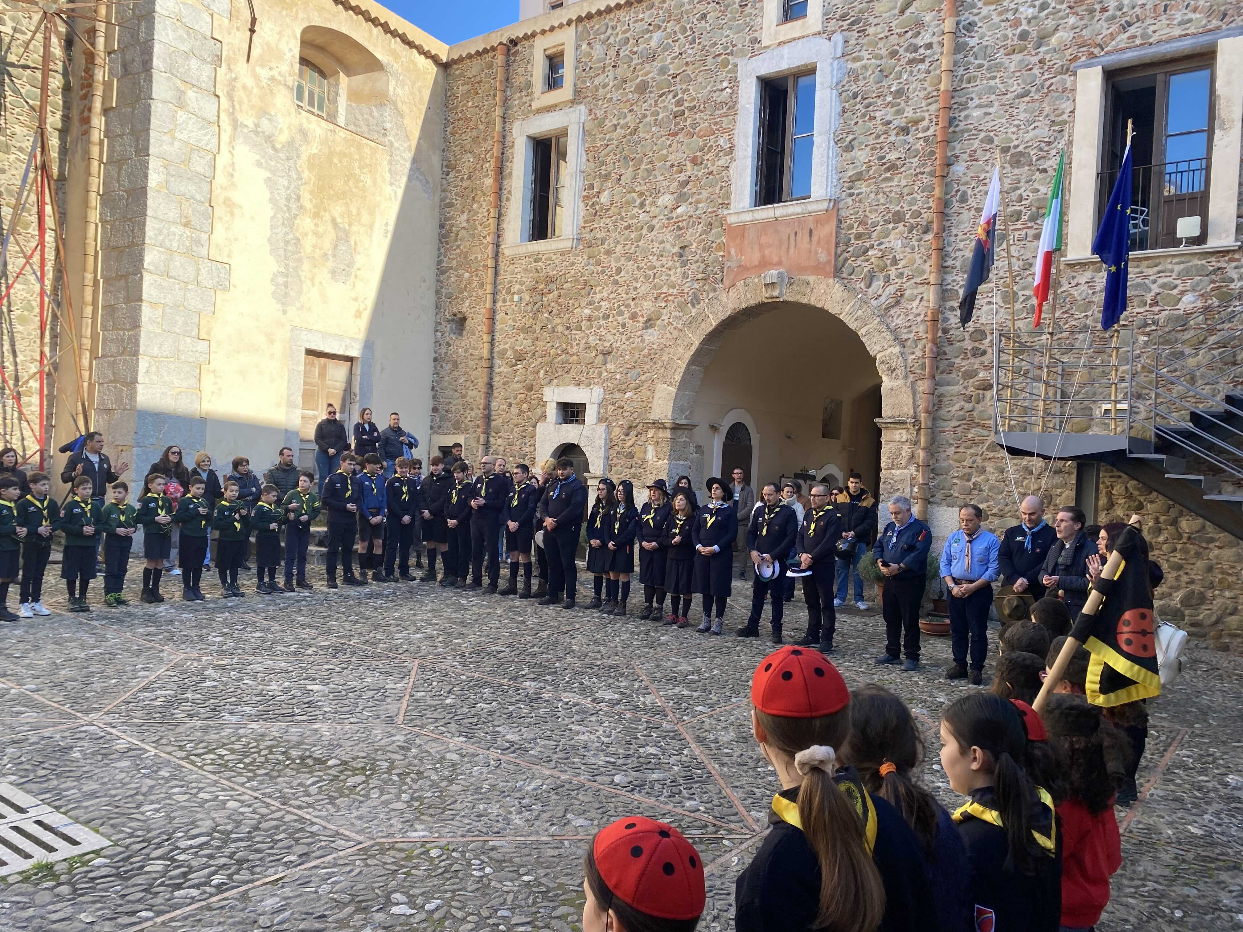 Nel pomeriggio di sabato 22 febbraio al castello c’è stato quindi l’incontro tra ragazzi e ragazze, bambine e bambini che animano oggi il gruppo scout santagatese e quelli che invece nel passato hanno intrecciato il loro cammino di vita con il mondo dello scoutismo, Un momento particolarmente suggestivo, aperto dal “quadrato” del gruppo e dal solenne “issa bandiera”.