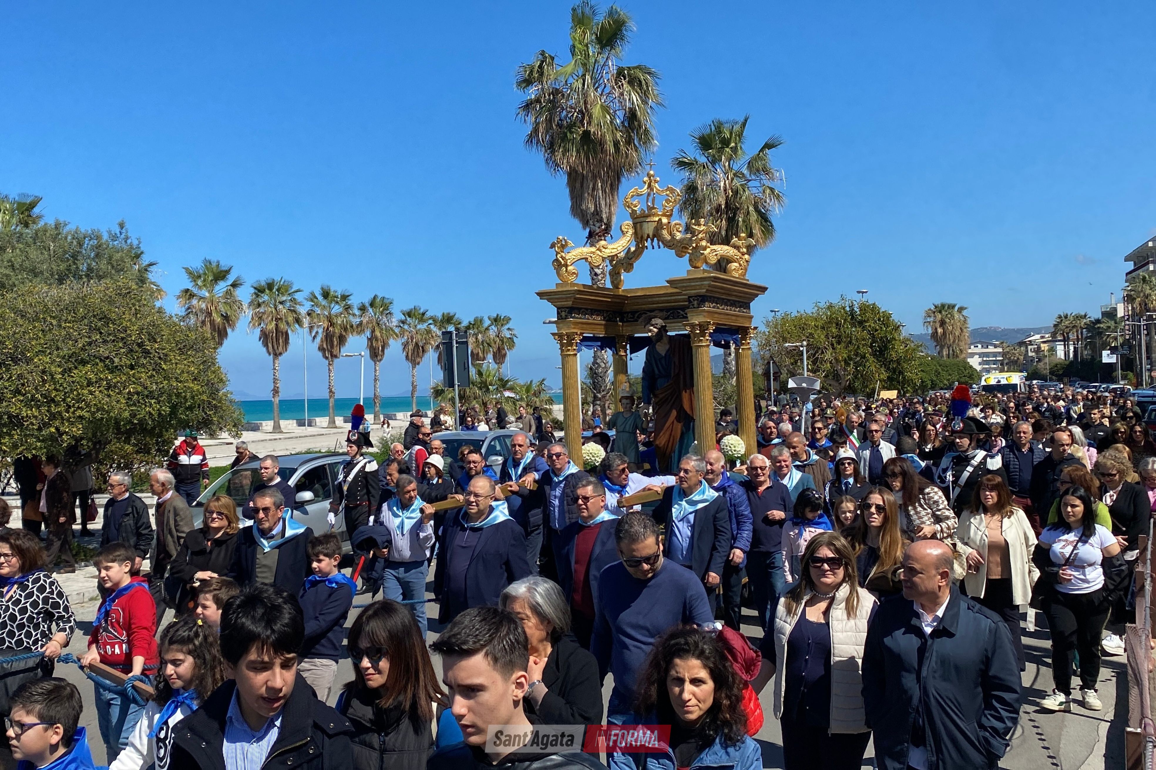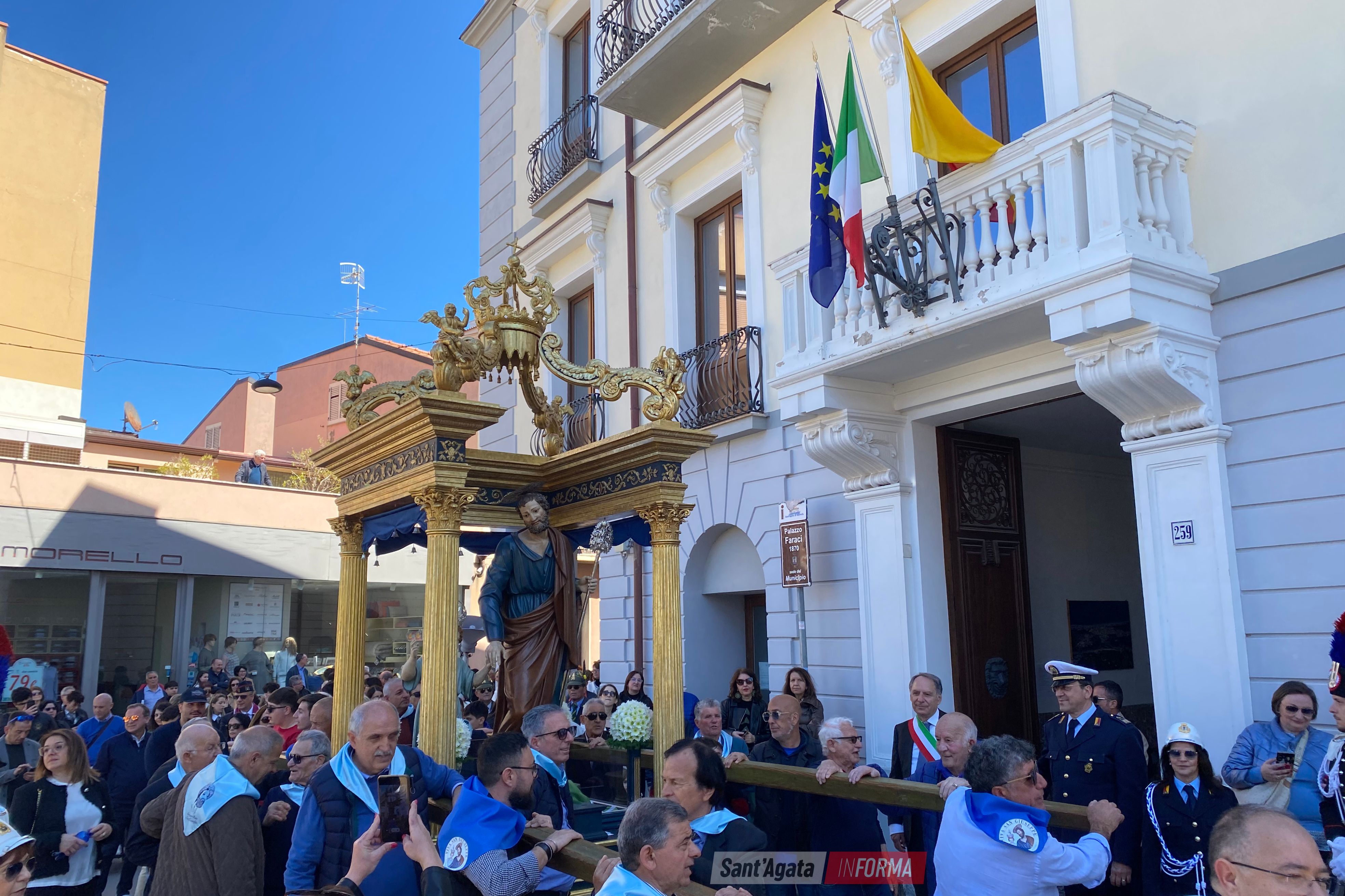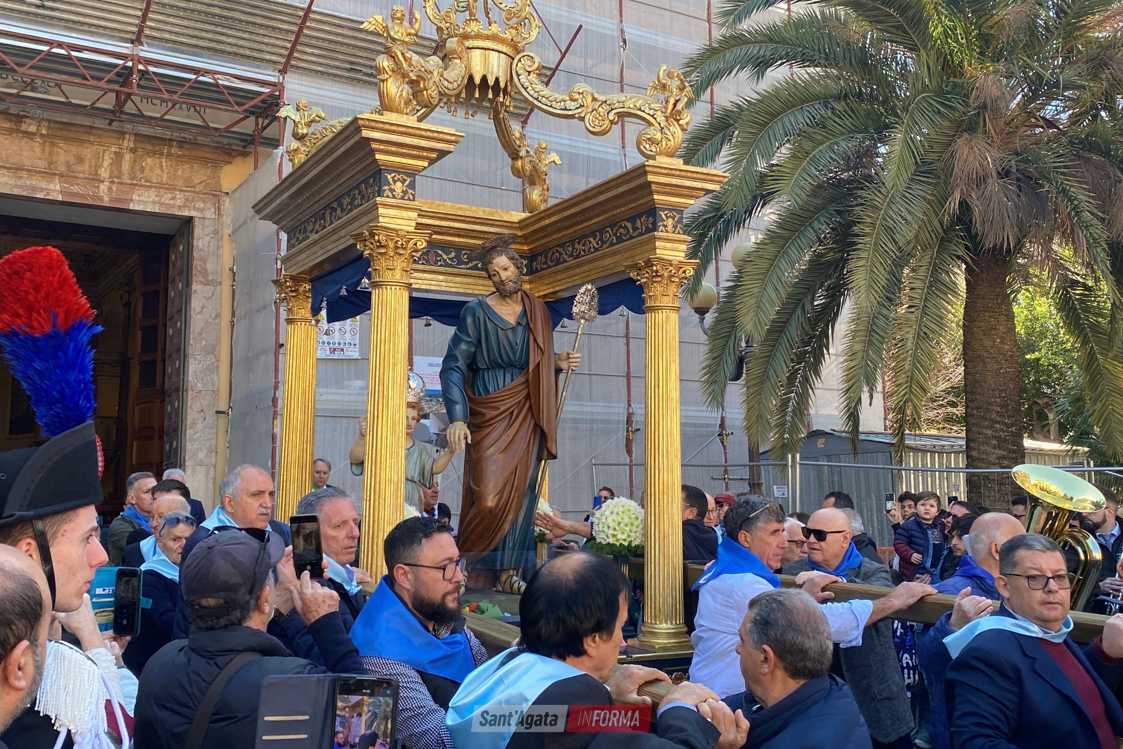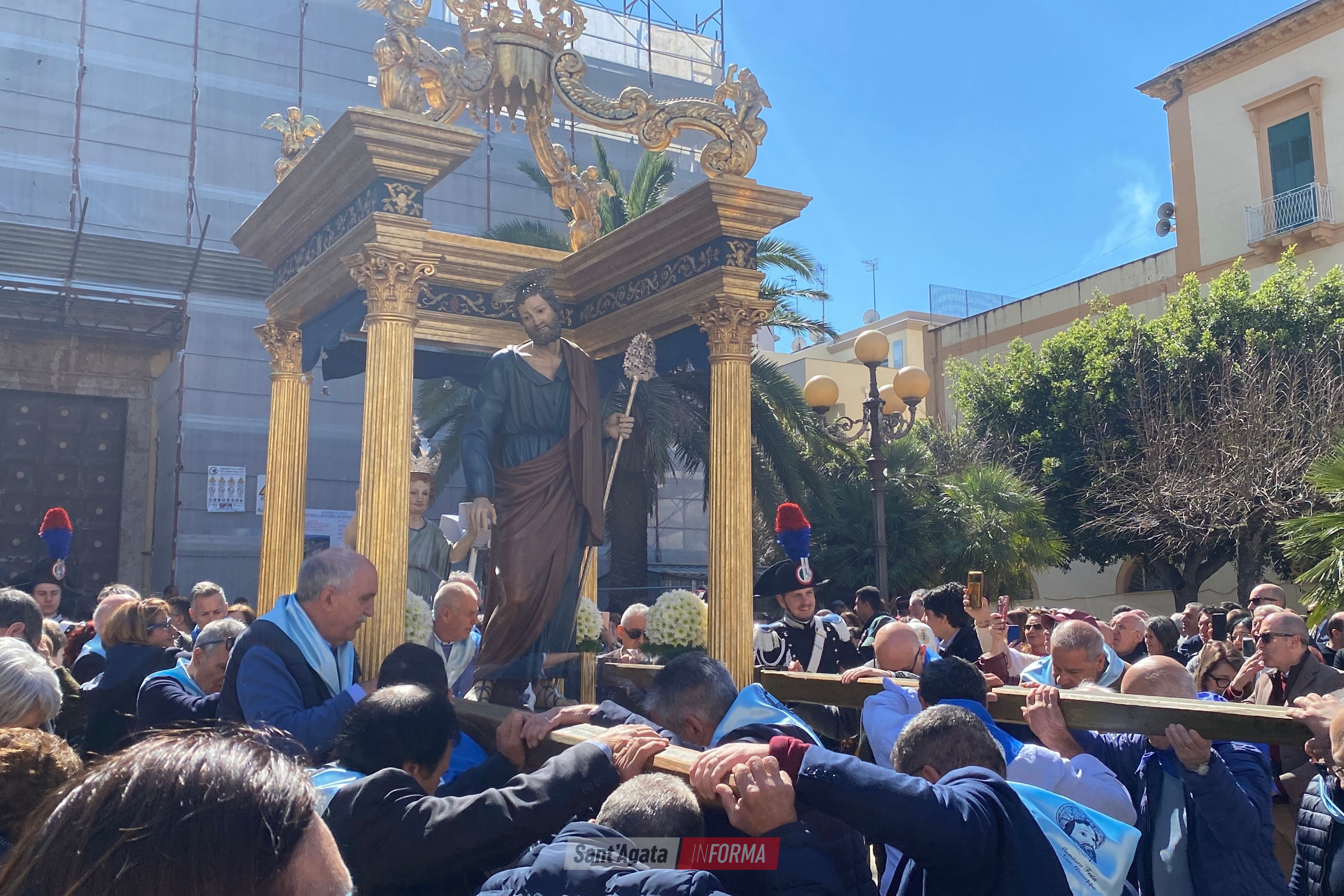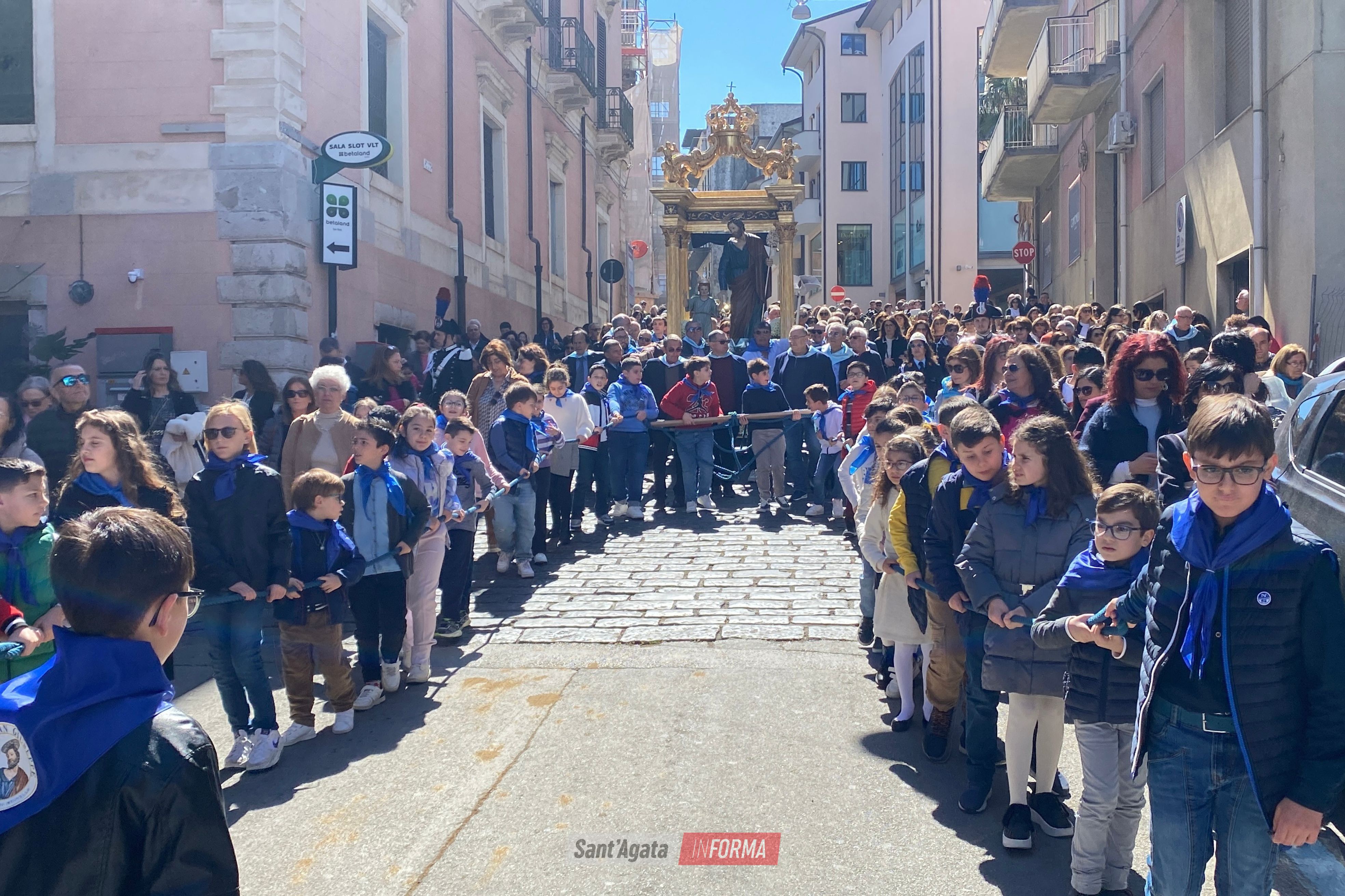 Subito dopo la Processione del simulacro di San Giuseppe col Bambino Gesù, accompagnata da una folla di fedele e preceduta da tanti bambini che hanno sorretto il cordone, è partito da piazza Duomo per attraversare le vie del centro cittadino. Di fronte al palazzo Municipale, quindi, il tradizionale omaggio da parte del sindaco Bruno Mancuso che ha rinnovato l’atto di affidamento della città al Santo Patrono.